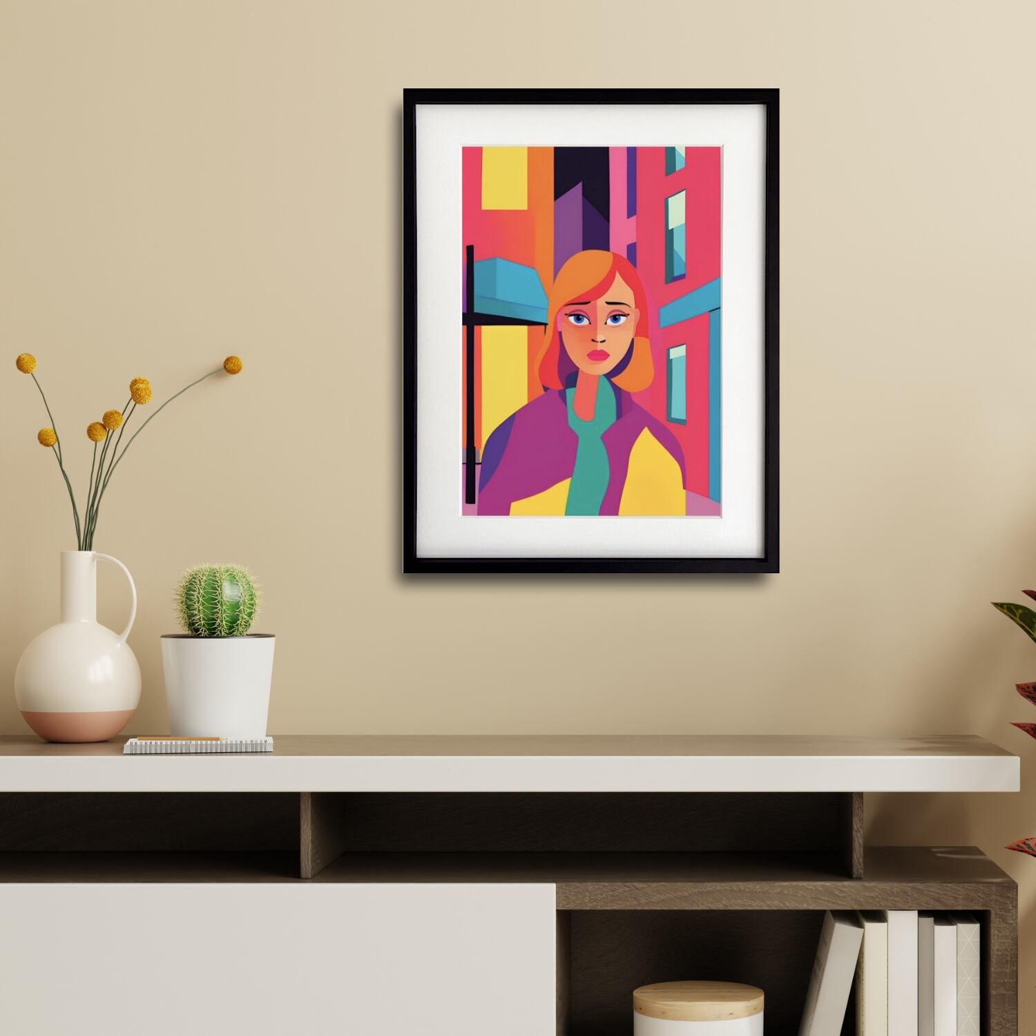 アートポスター, ポップアート, 現代アート, 抽象女性アート, カラフルインテリア, モダンポスター, City Melancholy, 都会的アート, おしゃれな壁掛け, Make Sense Art, 感情のアート, クリエイティブインテリア, 北欧モダン, ギャラリー風インテリア