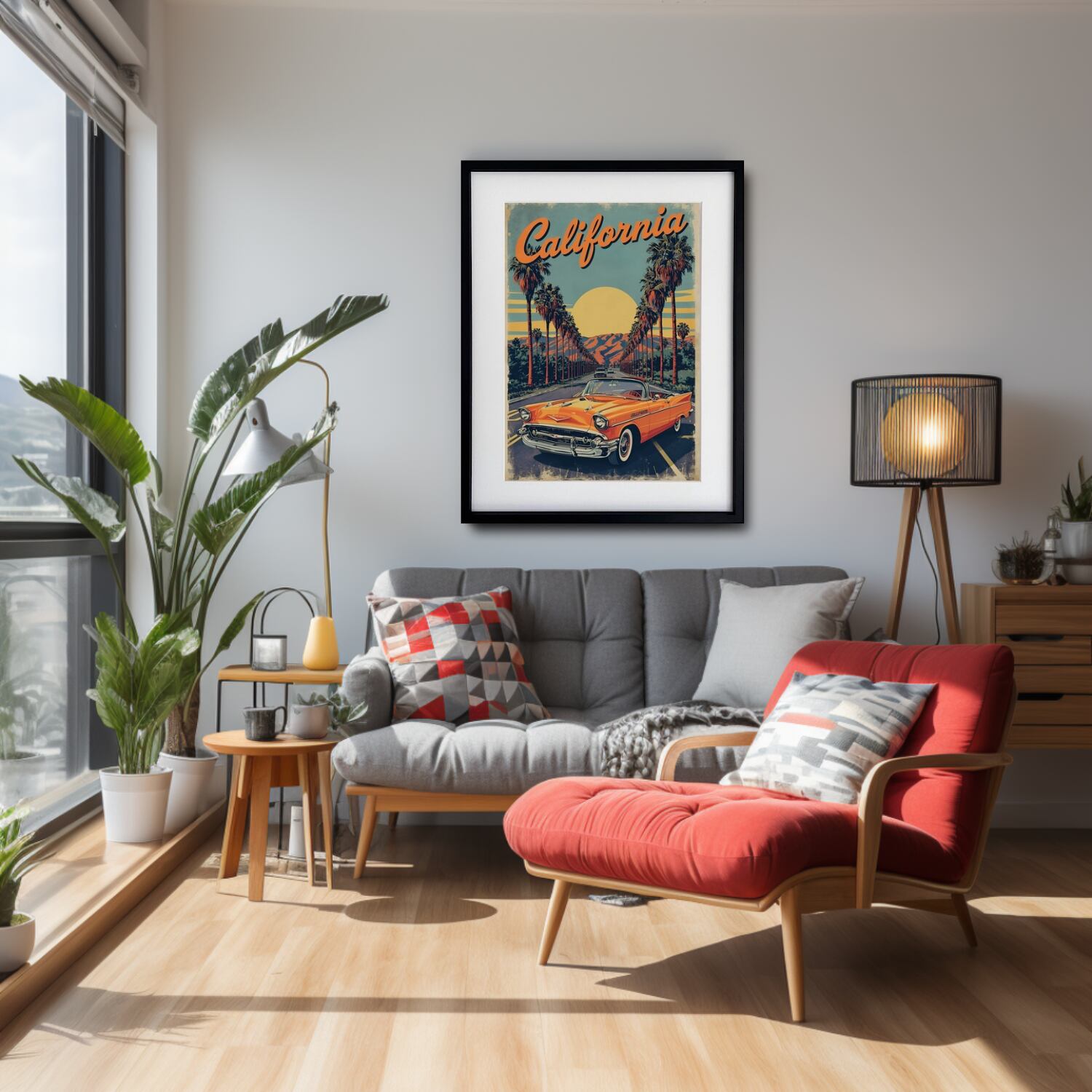 California Dreamin’|カリフォルニアの陽光とクラシックカーが描く自由のアートポスター|レトロモダンな空間を彩るインテリアA4ポスター