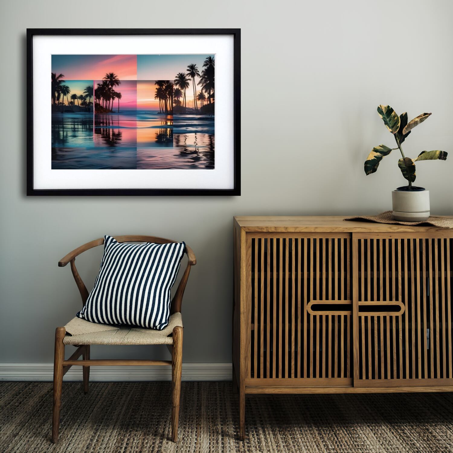 Tropical Reflection|4つの時間が溶け合う南国アートポスター|海と夕陽が奏でる癒しのインテリアに最適A2ポスター