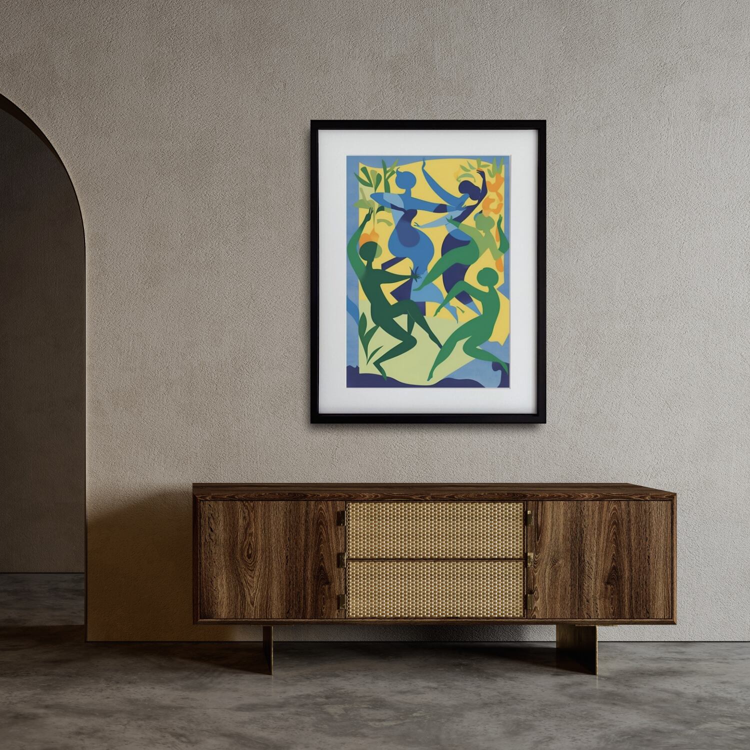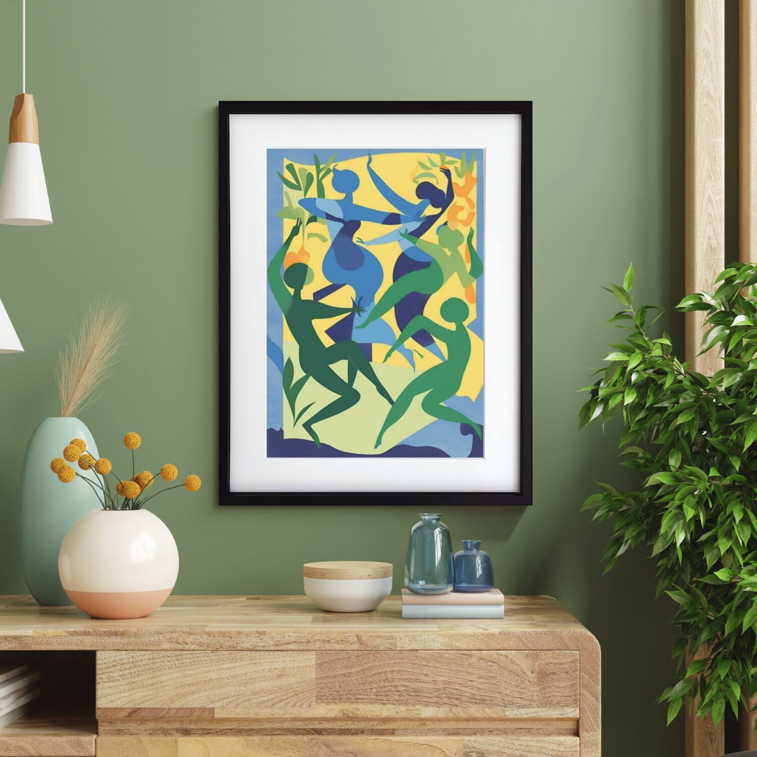 「Dance of Harmony」は、空間に活気と幸福感を吹き込むダイナミックなアートポスター。