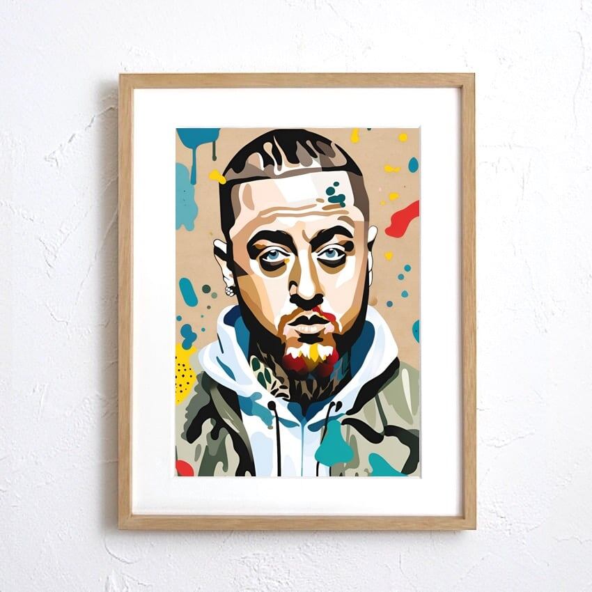 Mac Miller Ⅱ|伝説的ラッパーを描いたストリートアートポスター|鮮やかな色彩とメッセージ性が空間を彩るモダンインテリアA2ポスター