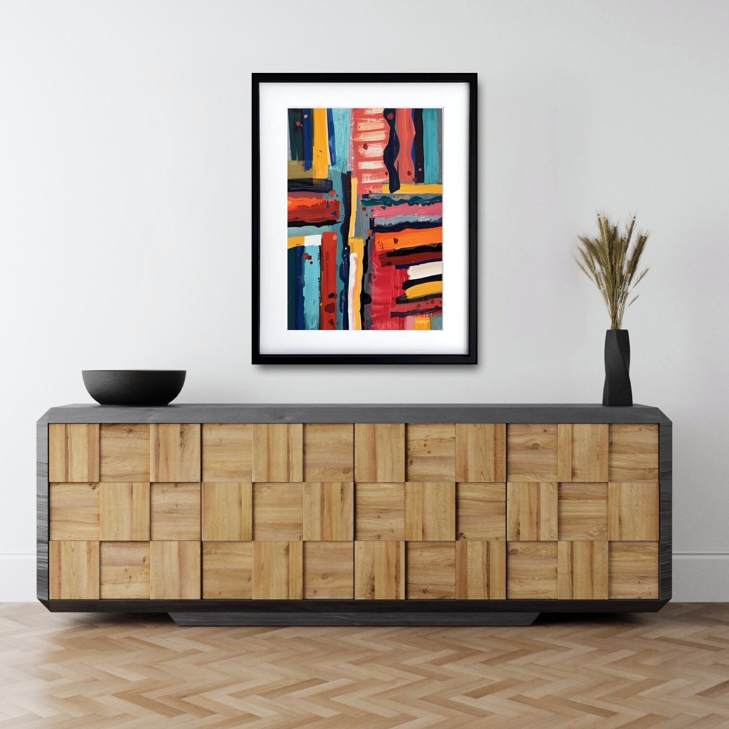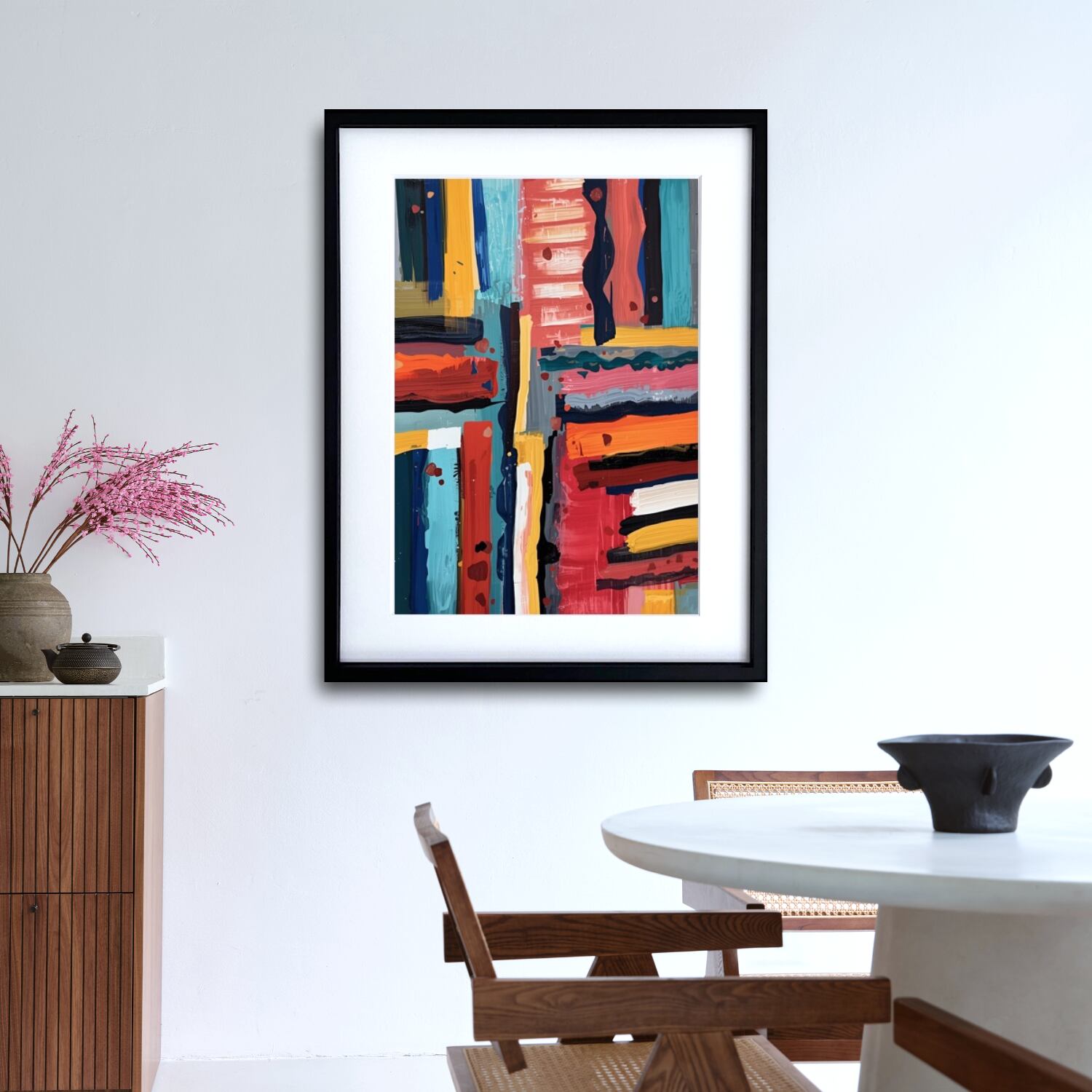 この作品は、インテリアの中にエネルギーと洗練されたモダンな印象をもたらす一枚。オフィスやリビング、アトリエはもちろん、カフェやギャラリー空間にも映えるデザインです。日常にアートの躍動感を取り入れたい方におすすめです。