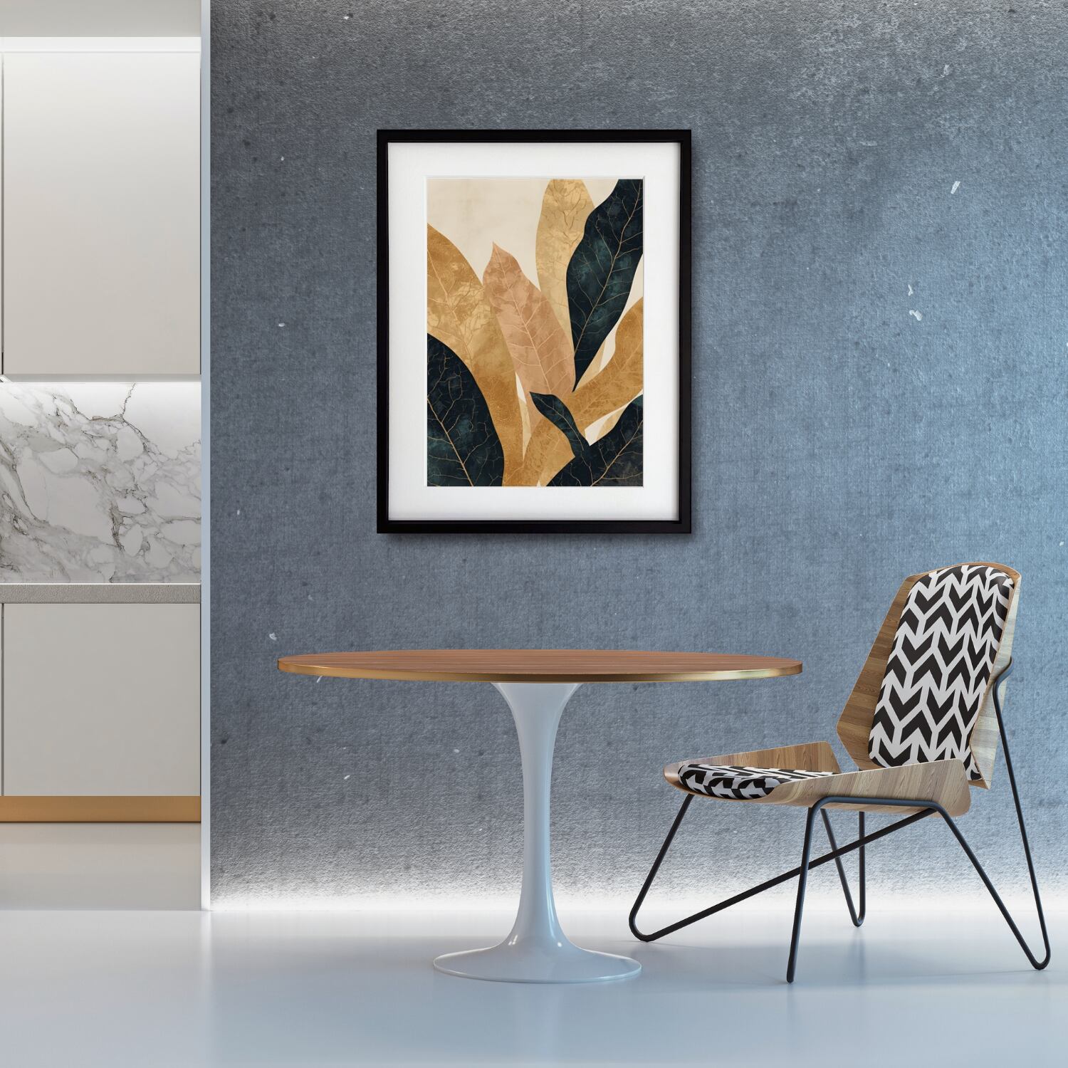 細部まで描かれたリーフの質感とゴールドラインは、日常の空間に「自然の気品」と「高級感」をプラス。眺めるたびに心を落ち着かせ、同時に洗練された印象を与えます。