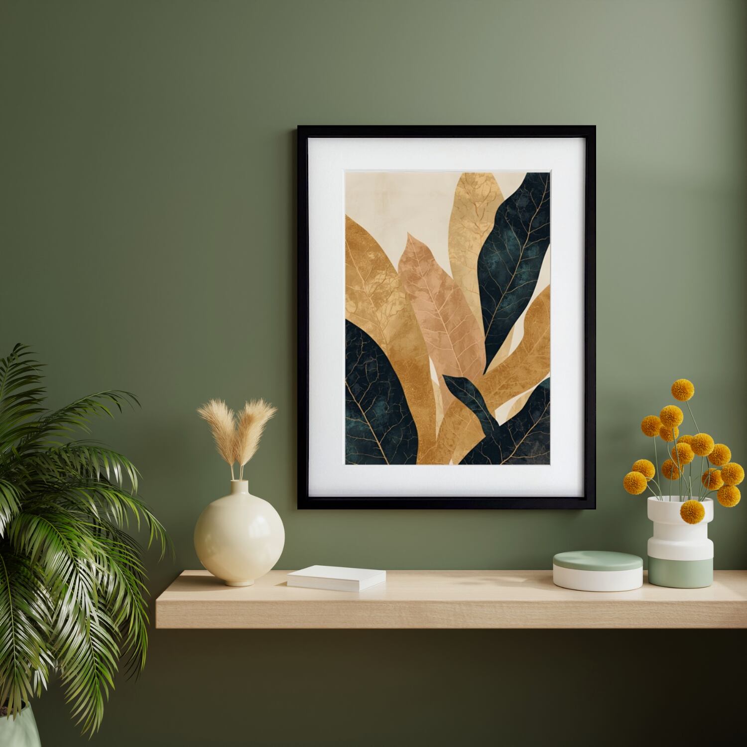 A4. 同シリーズのボタニカルアートやシンプルな抽象画と組み合わせると、統一感のある空間が作れます。