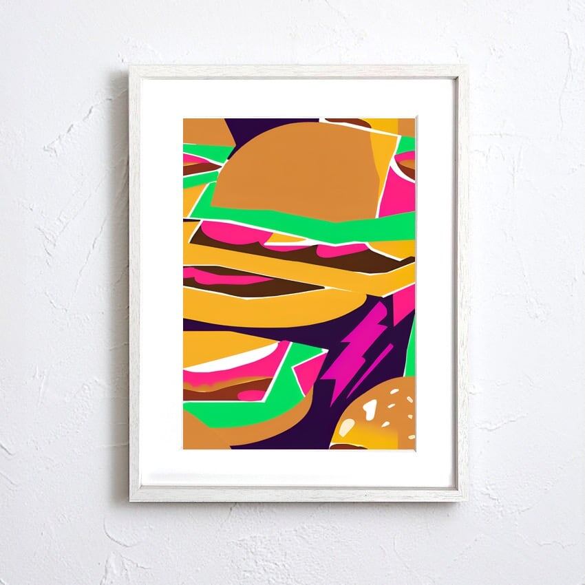 『Hamburger Abstract』は、ファストフードという身近な存在をアートに昇華させた、ポップで大胆な作品です。ユーモアと現代性を融合し、空間を一瞬で楽しく彩る一枚。アート初心者からコレクターまで幅広くおすすめできる、遊び心に満ちたポスターです。