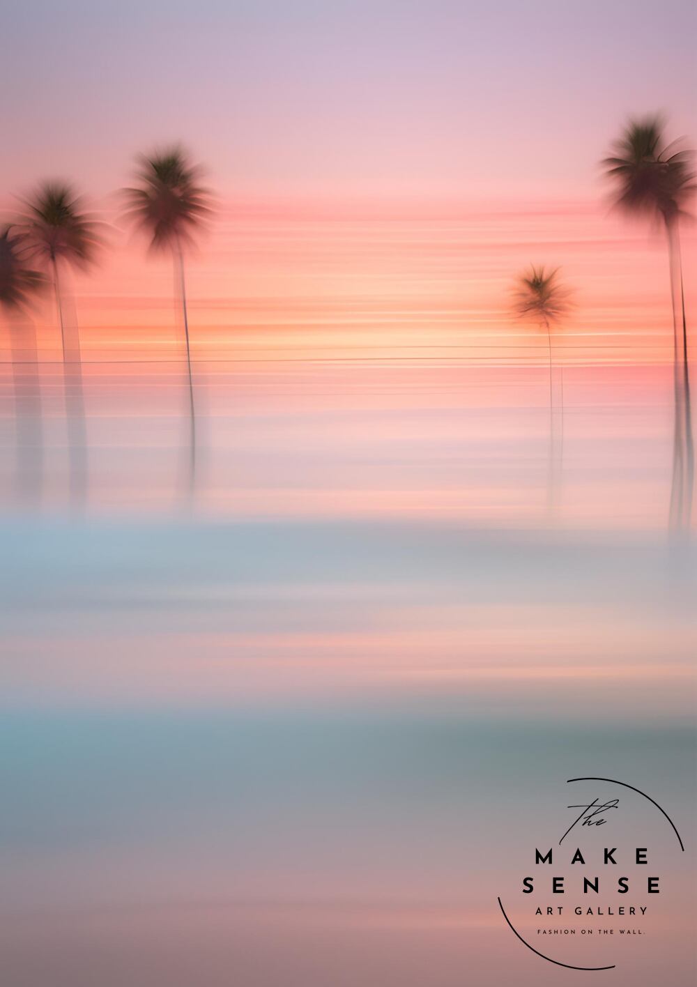 「Ethereal Palm Sunset」は、現実と幻想の境界を曖昧にし、空間に優美な余韻をもたらすアートポスターです。