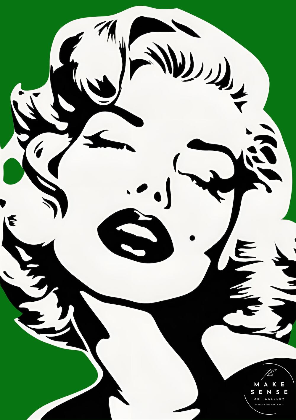 Monroe Love (Green)|モノクロームに映えるグリーンが魅せるモードポップアートポスター|洗練と華やかさを添えるインテリアA2ポスター