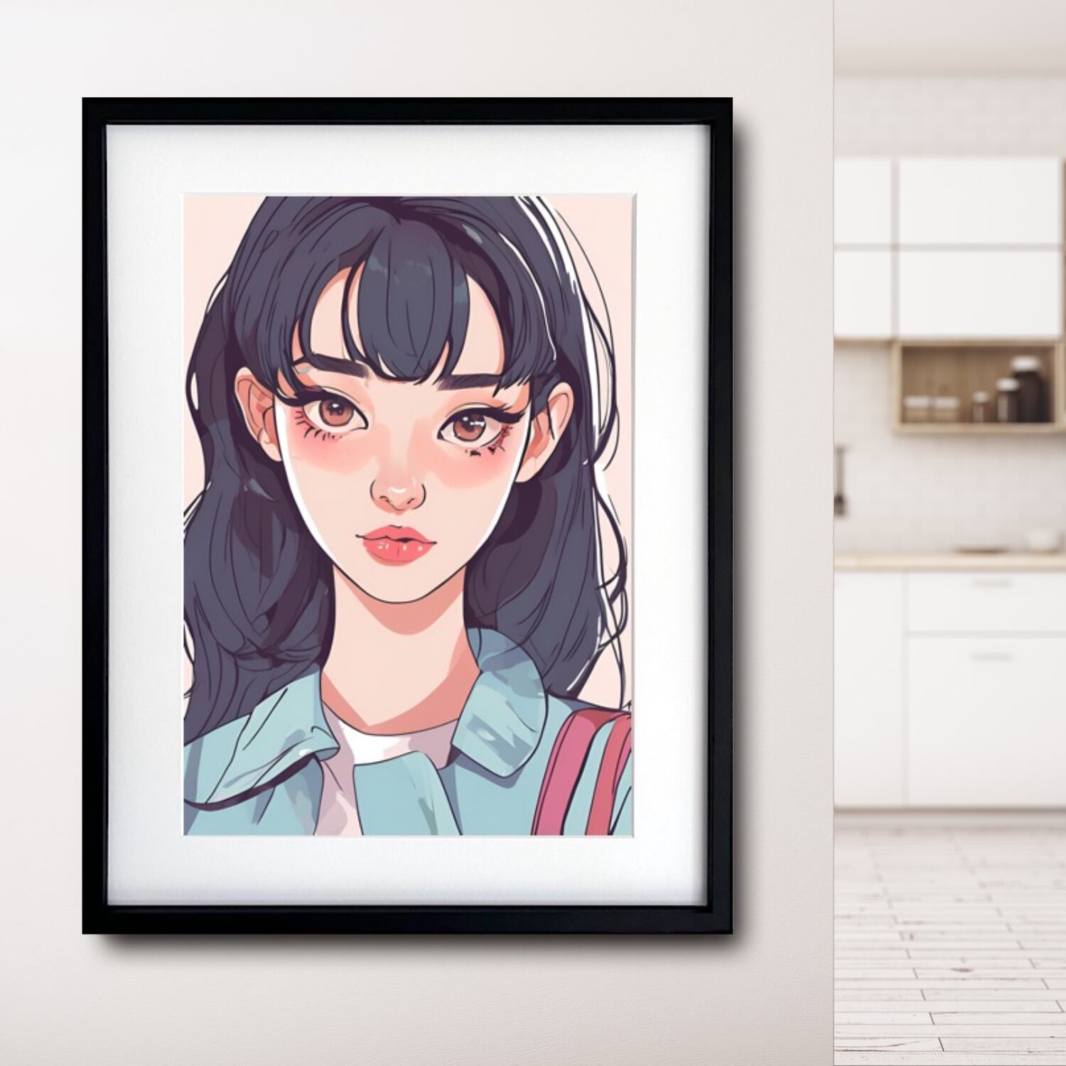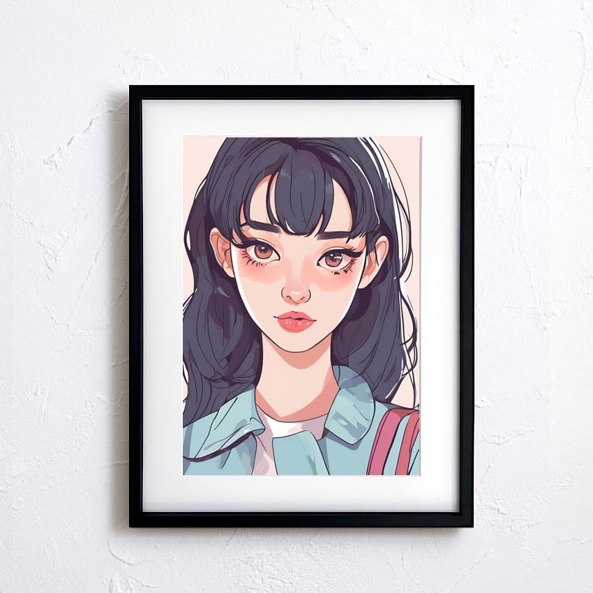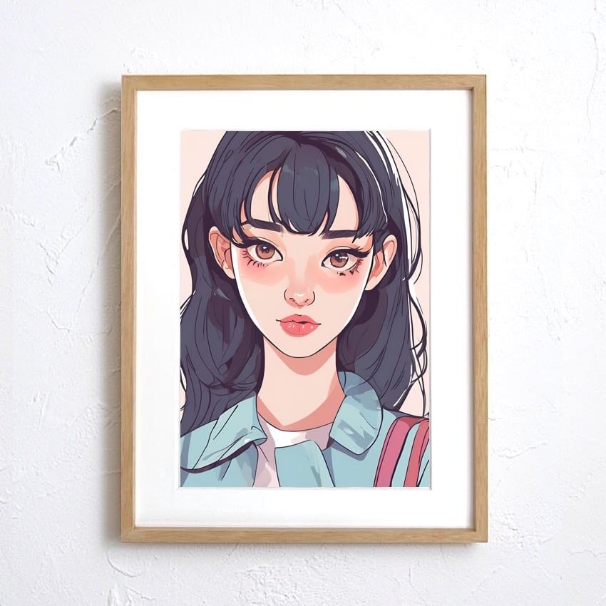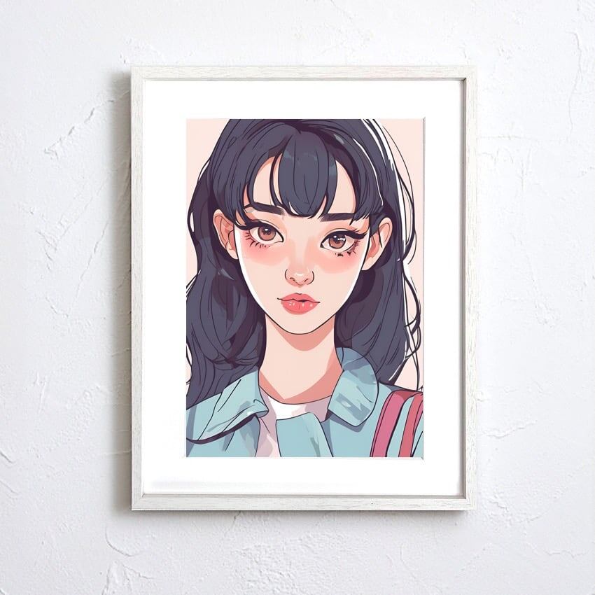 Long Hair Girl|ロングヘアの少女を描いたレトロポップアートポスター|シティポップテイストでおしゃれ空間を演出する一枚A4ポスター