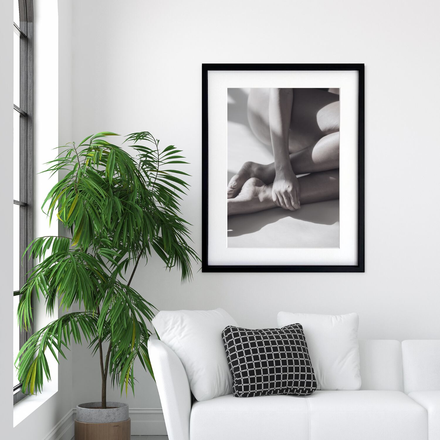 この作品は、肌の質感、指先の緊張、影の柔らかさを静かにとらえた一枚です。