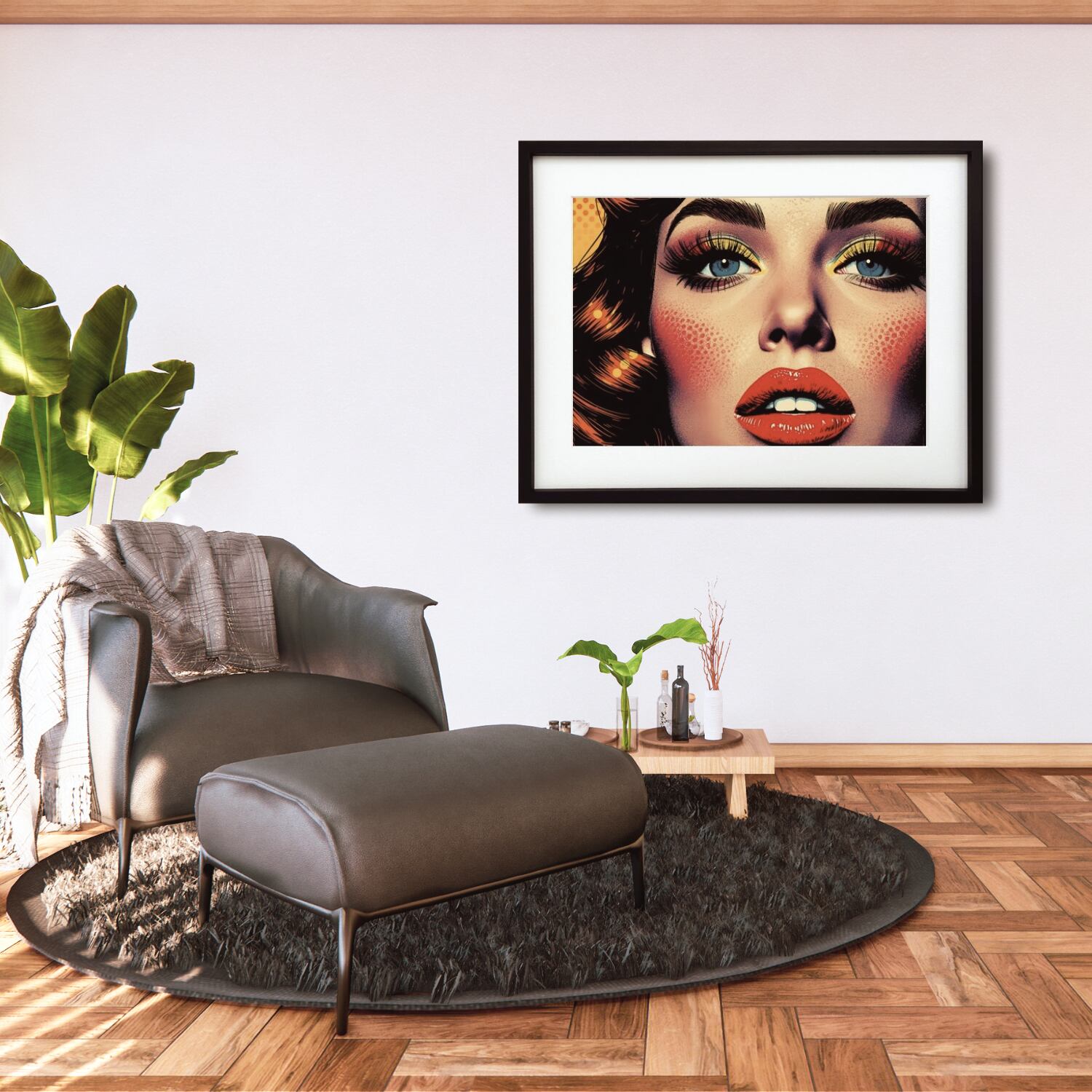 Pop Desire|赤い唇と青い瞳が印象的なポップアートポスター|大胆でスタイリッシュな女性像が空間をモードに彩るインテリアA2ポスター