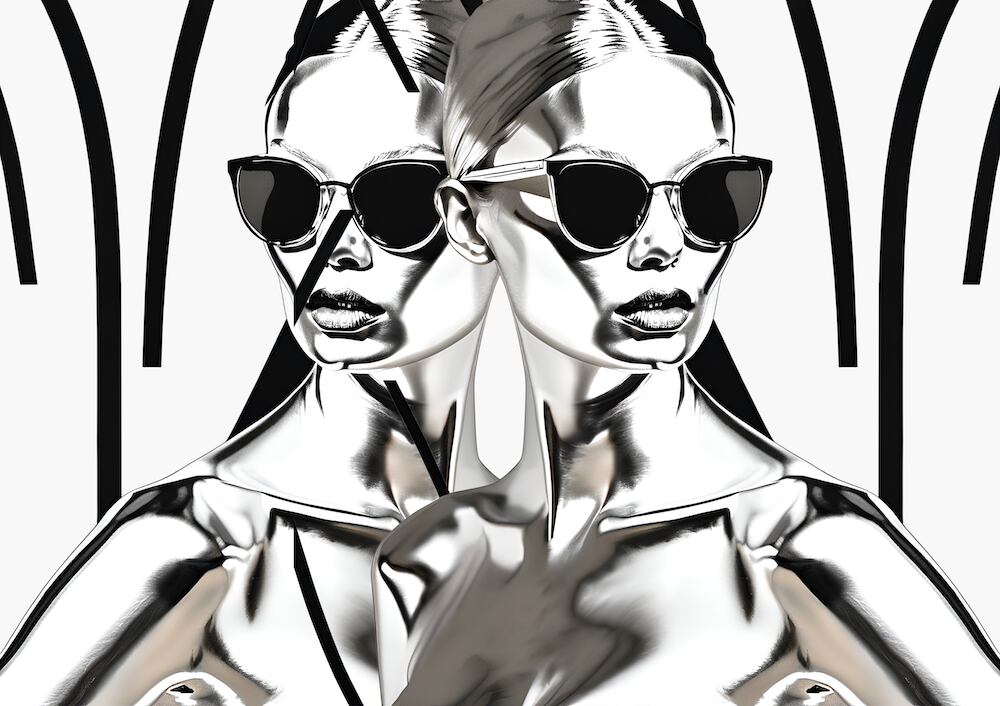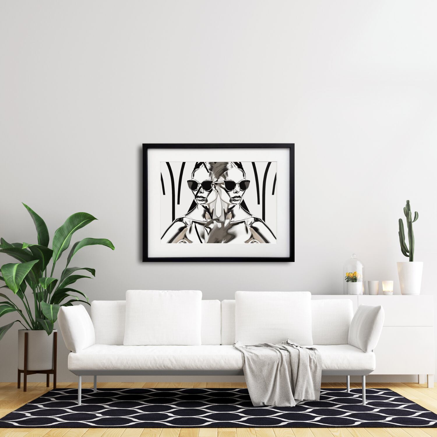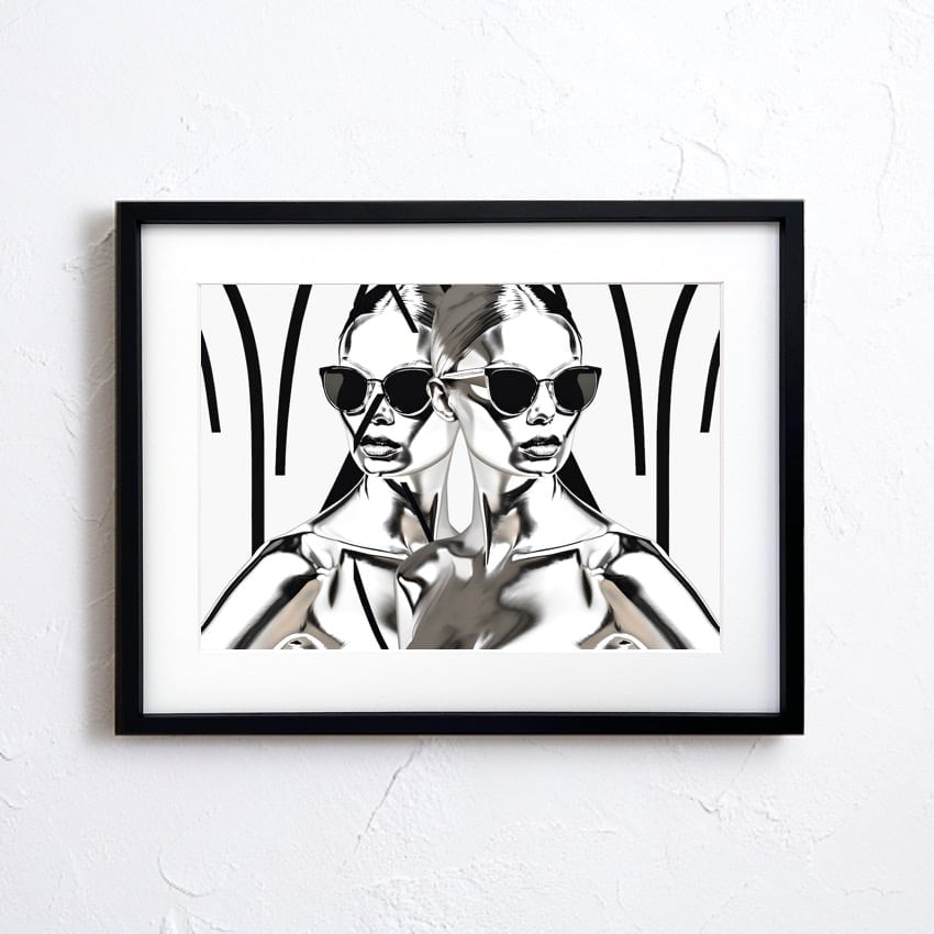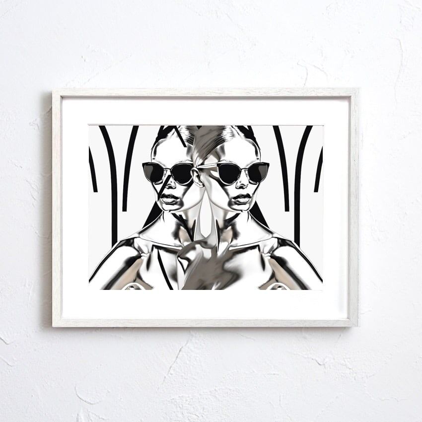 Iron Woman, Muse, メタリックアート, 現代アートポスター, Make Sense, モダンインテリア, 北欧モダン, メイクセンス, デジタルアート, アートポスター, 高級アート, ジークレー印刷, おしゃれインテリア, メタルデザイン, 美しい女性アート, ホテルライク, シルバーアート, 空間演出, アートギャラリー