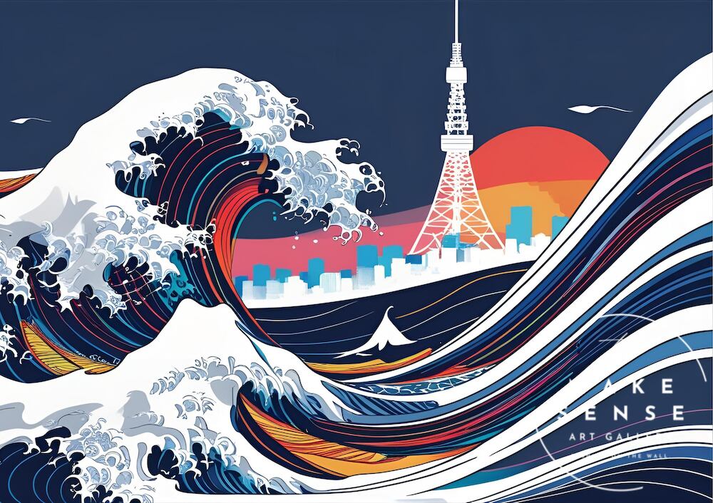 葛飾北斎の名所浮世絵揃物「神奈川沖浪裏」を現代風にオマージュ