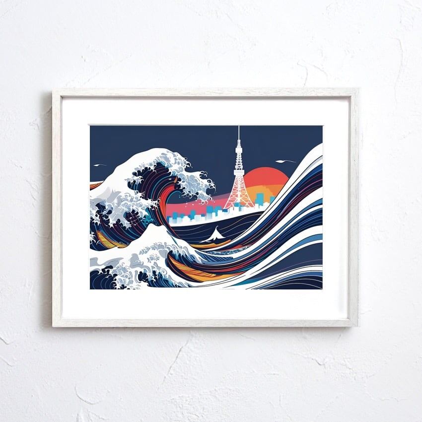 The Great Wave Urban ⅱ|葛飾北斎の名作をモダンに再構築した和モダンアートポスター|浮世絵の波が映える都会的インテリアに最適A2ポスター