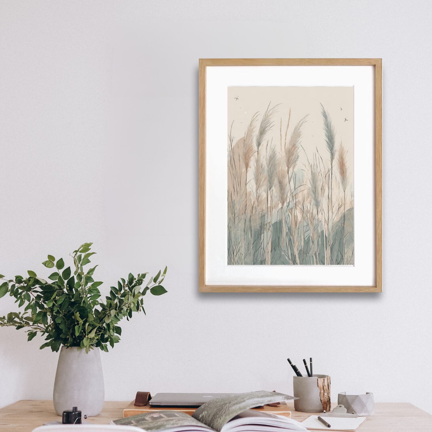 plume grass|ススキの柔らかな佇まいを描いた北欧ボタニカルアートポスター|くすみ色が映えるナチュラルモダンインテリアにA4ポスター