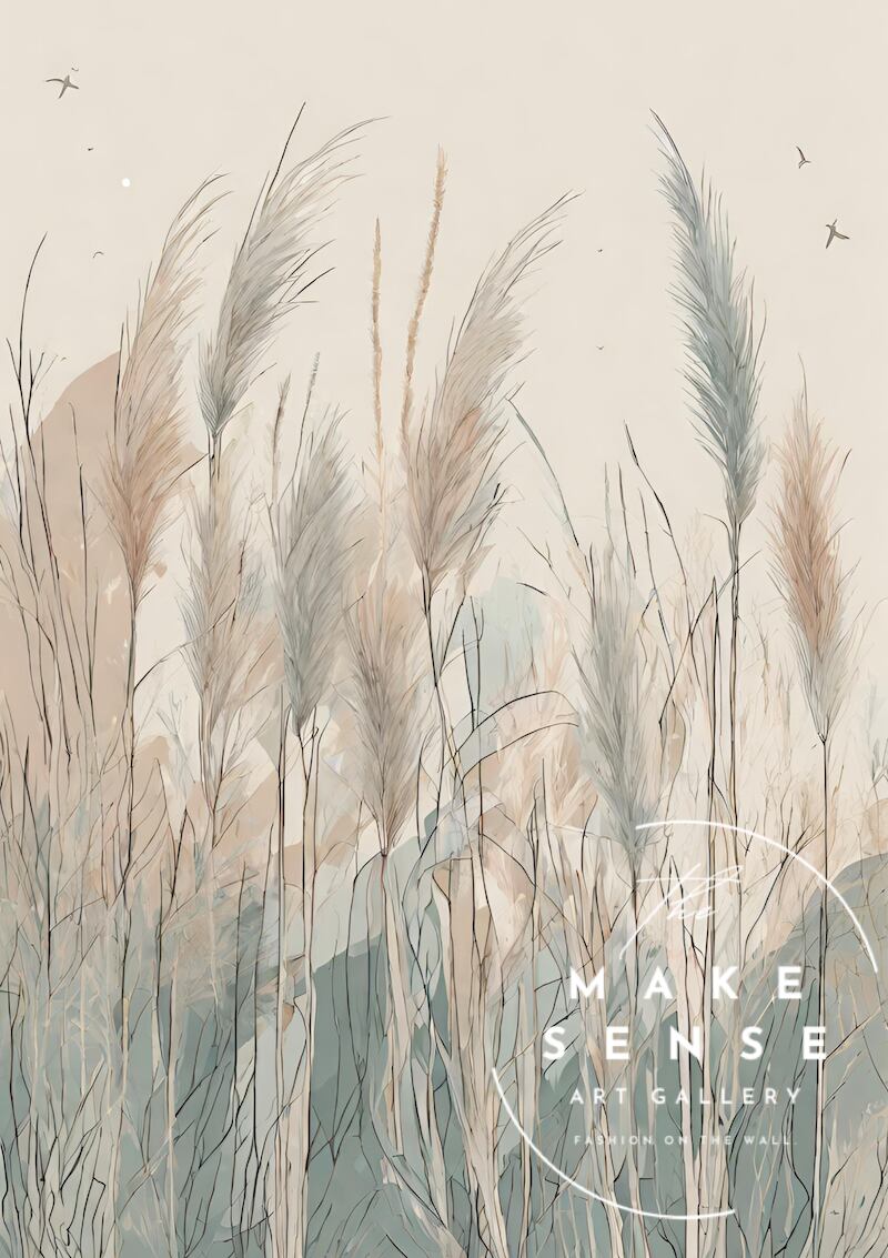 優雅に揺られるススキを表現したおしゃれなボタニカルポスター