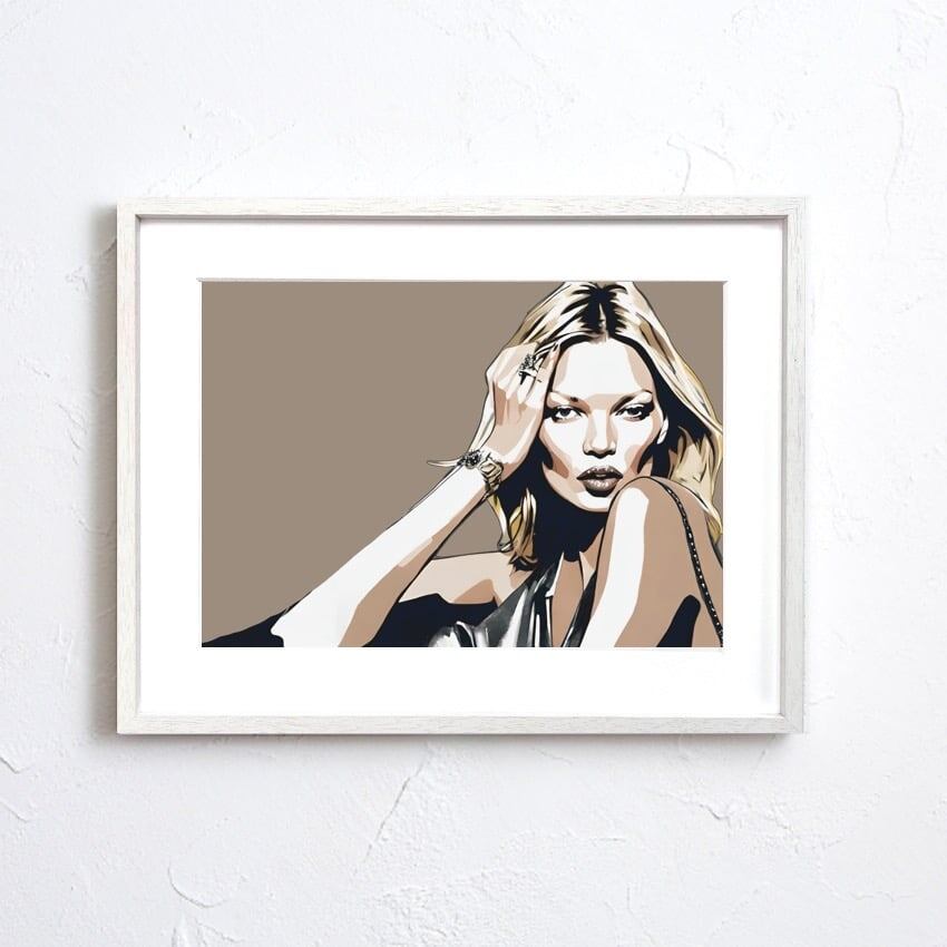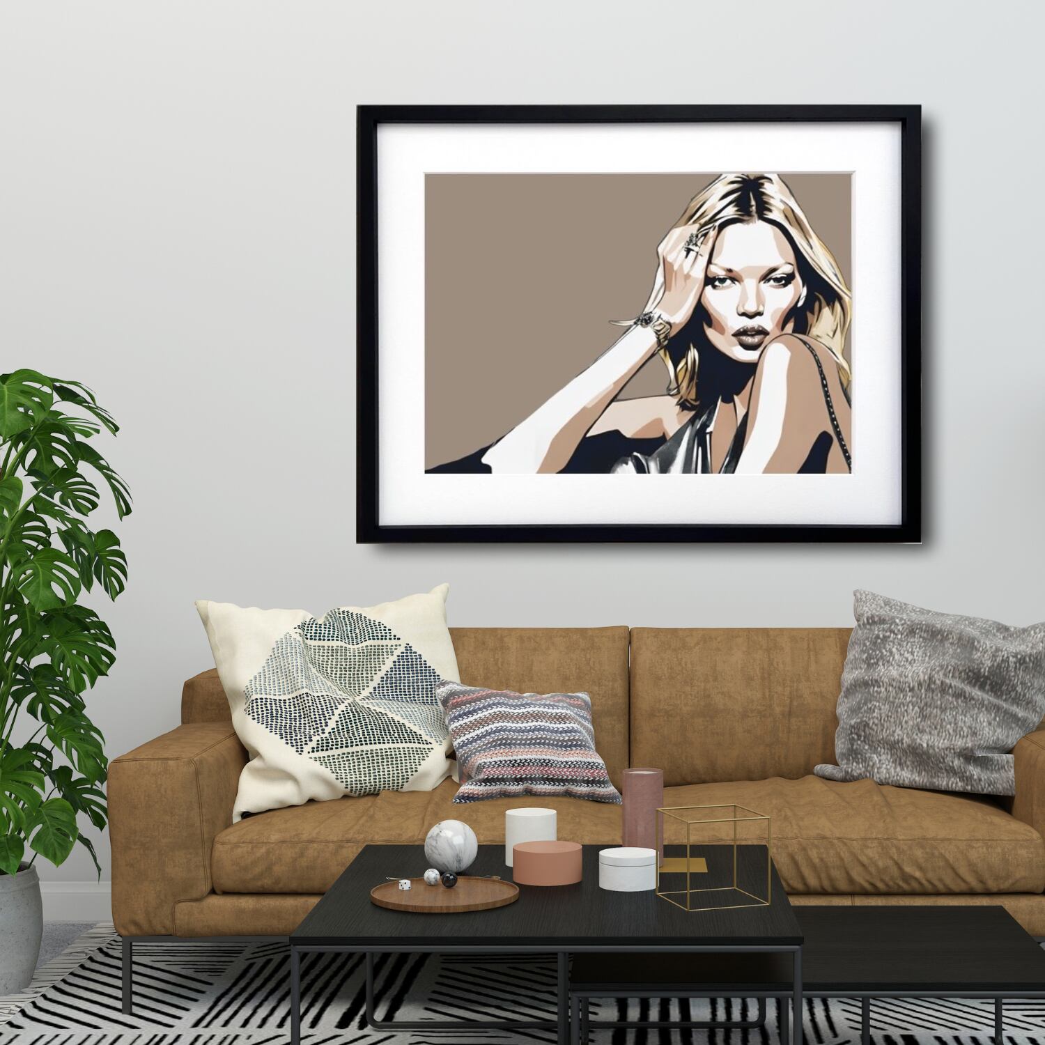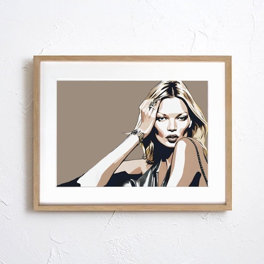 ファッション界の唯一無二のレジェンド、ケイトモスに敬意を評しアート表現。シンプルモダン、ラグジュアリーなインテリアに相性良くインパクトを残しながら落ち着いたセンスある部屋に変わります。