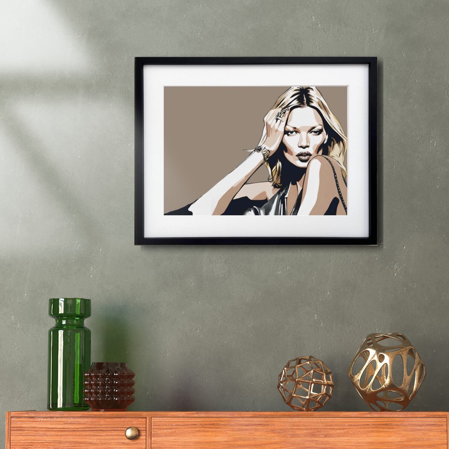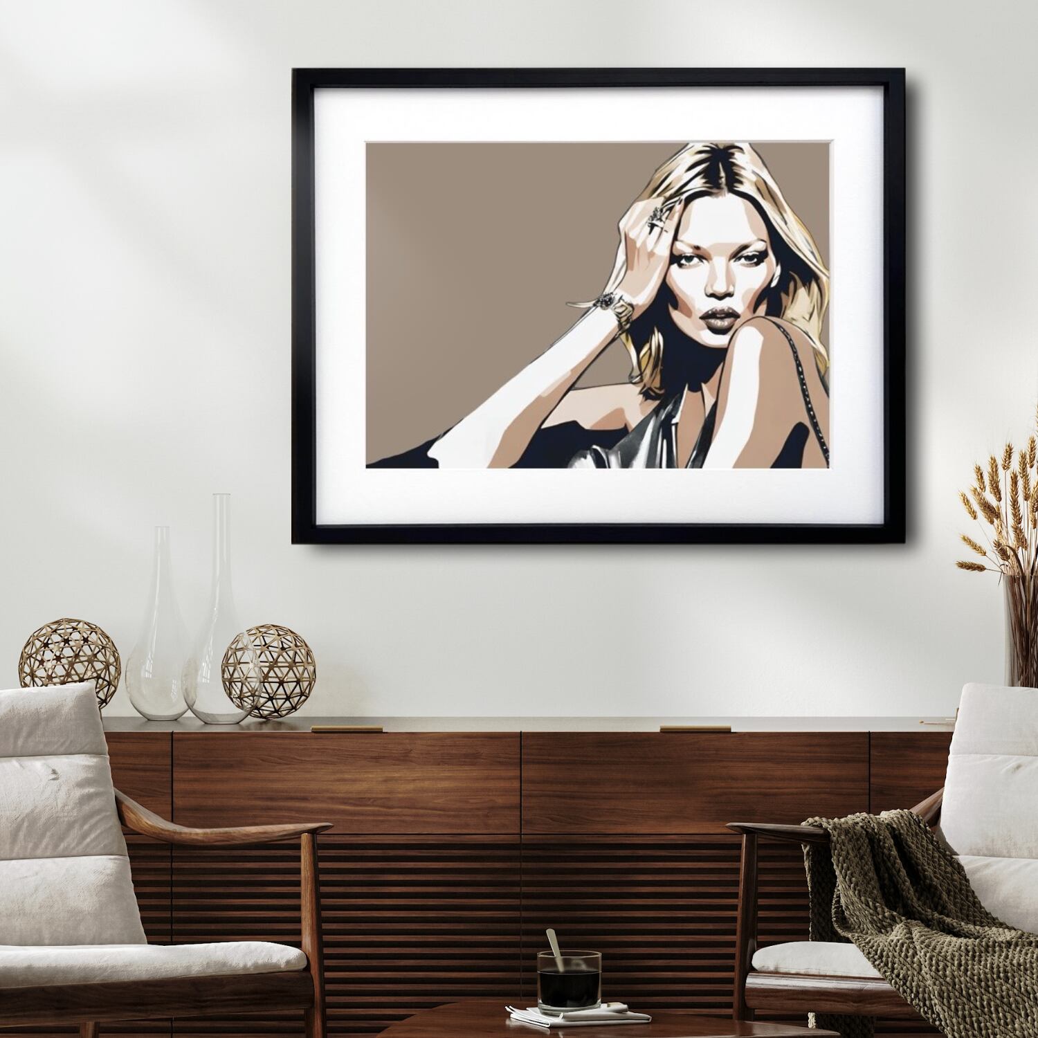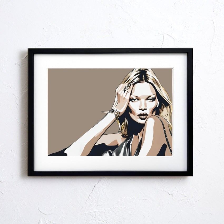 ファッション界の唯一無二のレジェンド、ケイトモスに敬意を評しアート表現。シンプルモダン、ラグジュアリーなインテリアに相性良くインパクトを残しながら落ち着いたセンスある部屋に変わります。