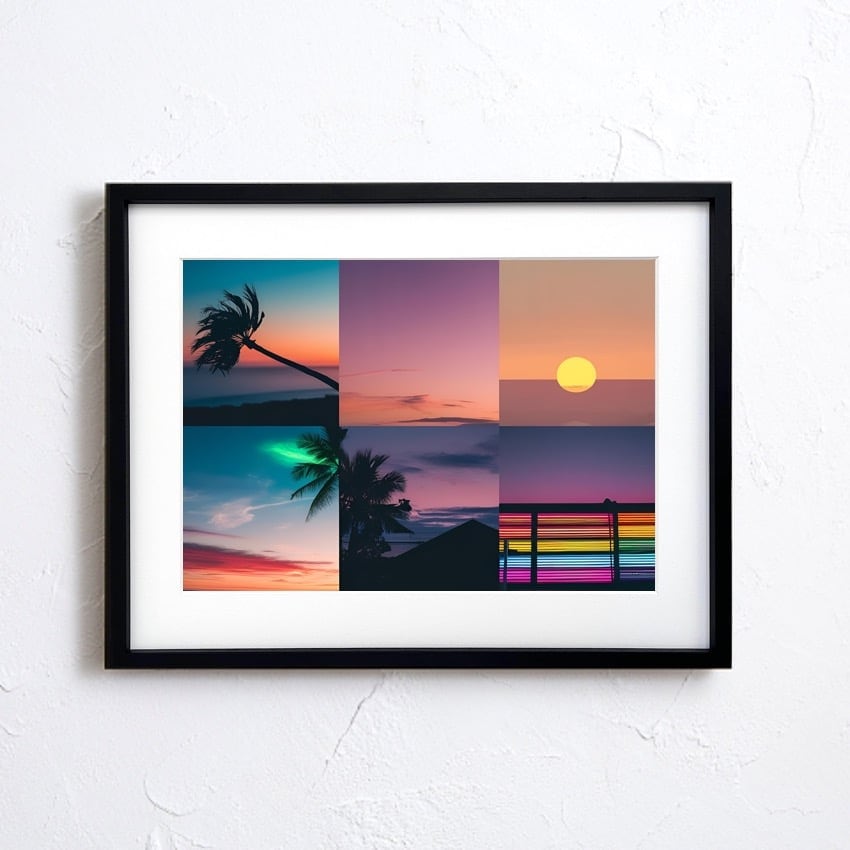 「Tropical Neon Sunset」は、南国の自然と都会的なネオンが溶け合い、眺めるたびに新しい感覚を呼び覚ますポスターです。インテリアの主役としても、アクセントとしても映える一枚。リゾートの空気感とポップカルチャーの融合を自宅に取り入れてみませんか?
