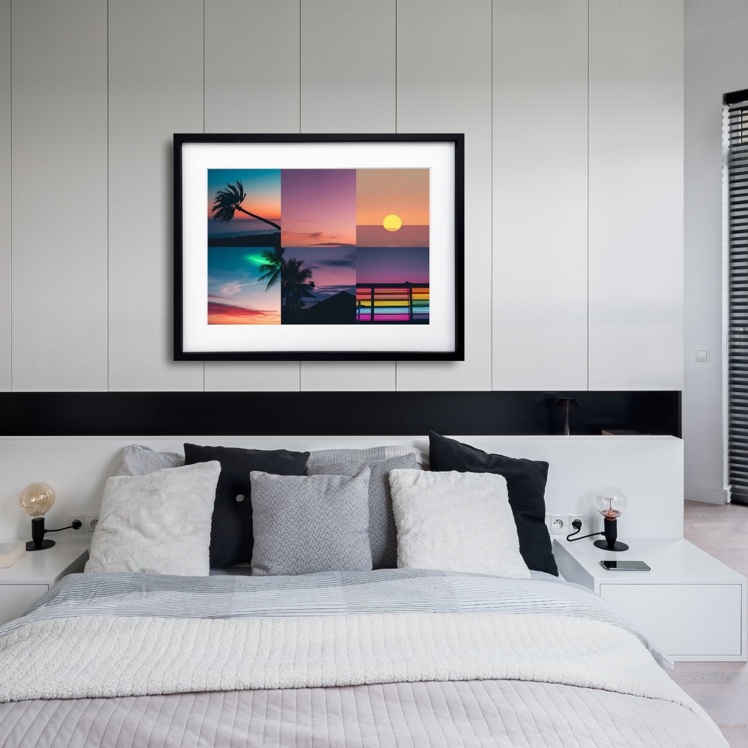 「Tropical Neon Sunset」は、南国の自然と都会的なネオンが溶け合い、眺めるたびに新しい感覚を呼び覚ますポスターです。インテリアの主役としても、アクセントとしても映える一枚。リゾートの空気感とポップカルチャーの融合を自宅に取り入れてみませんか?