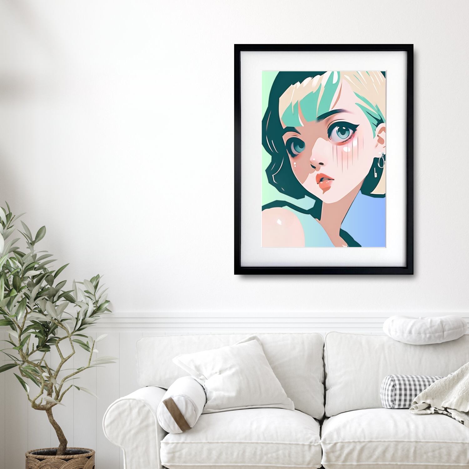 Bob Girl X|パステルグリーンが映えるレトロポップアートポスター|ローファイでおしゃれな女の子イラストが彩るシティポップインテリアにA2ポスター