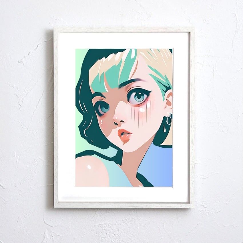 『Bob Girl X』は、クールさと可憐さを併せ持つ現代的なガールズカルチャーを表現した、ポップで洗練されたポートレートアートです。