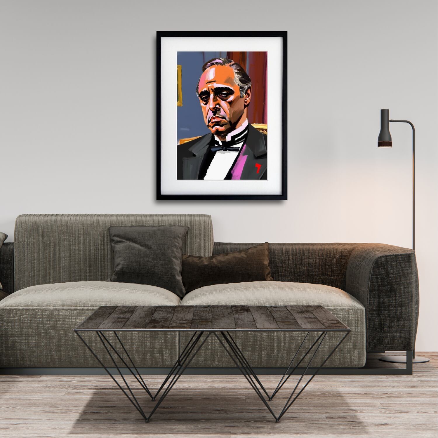 映画ファンなら一度は目にしたことがあるあの姿。名作『The Godfather』の持つ世界観を、現代的なアートとして再構築しました。