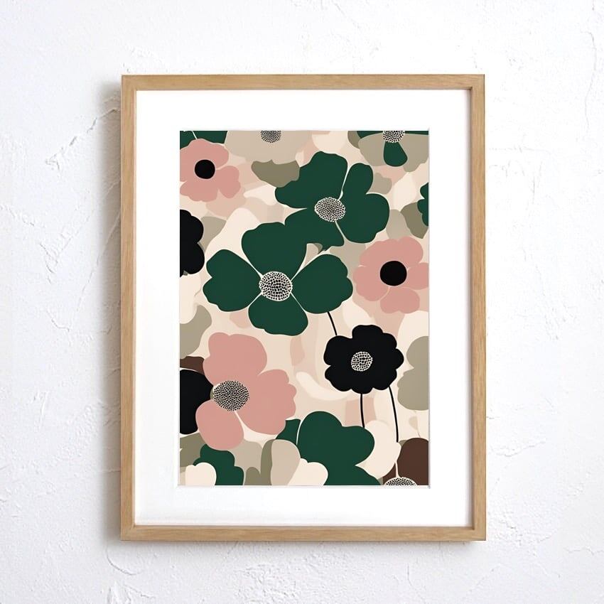 「Botanical Harmony(ボタニカル・ハーモニー)」は、落ち着いたグリーンとピンクベージュを基調にした北欧テイストのフラワーデザイン。シンプルでありながらも華やかさを感じさせるこのアートは、リビングや寝室、ワークスペースなどあらゆる空間に調和し、上質でリラックスした雰囲気を演出します。
