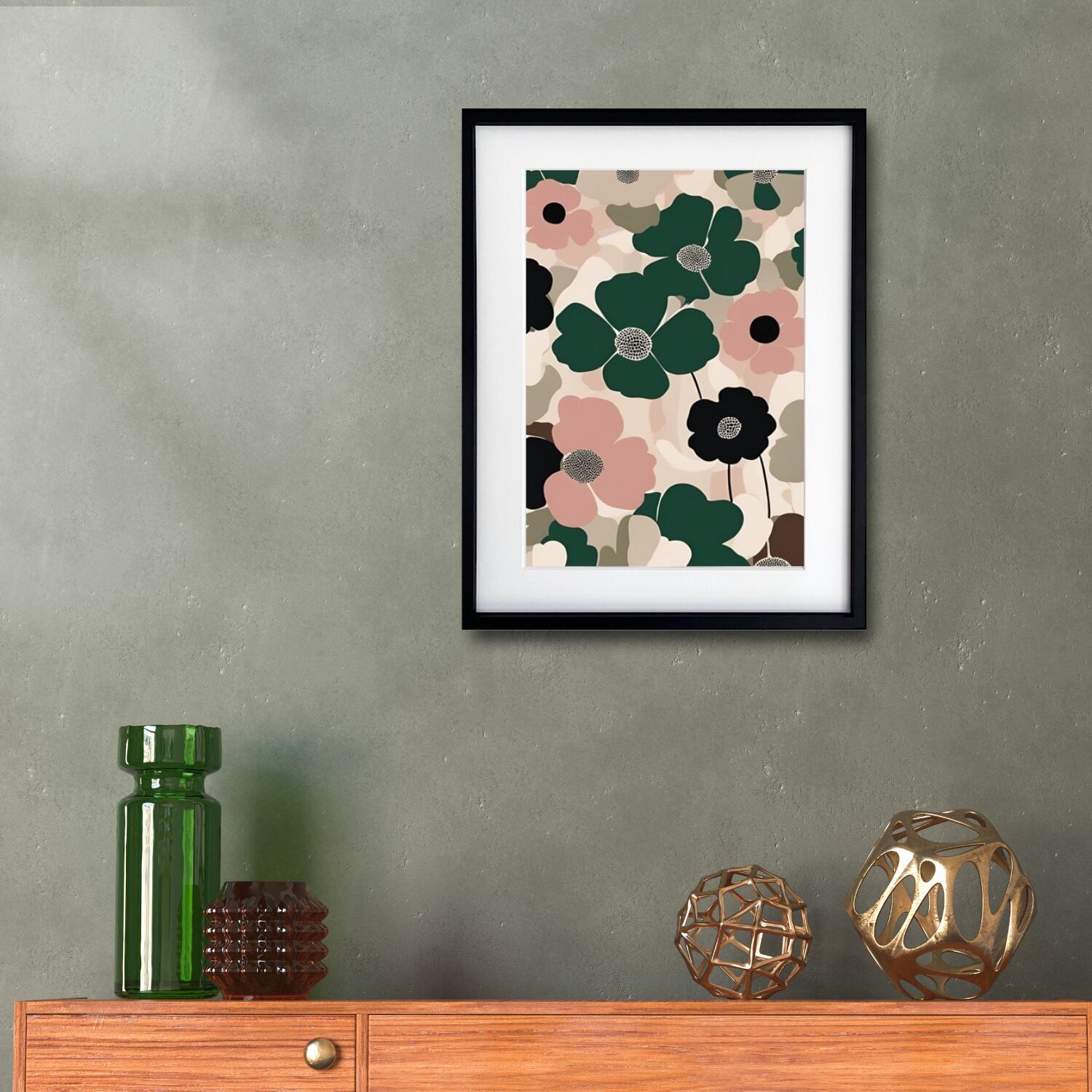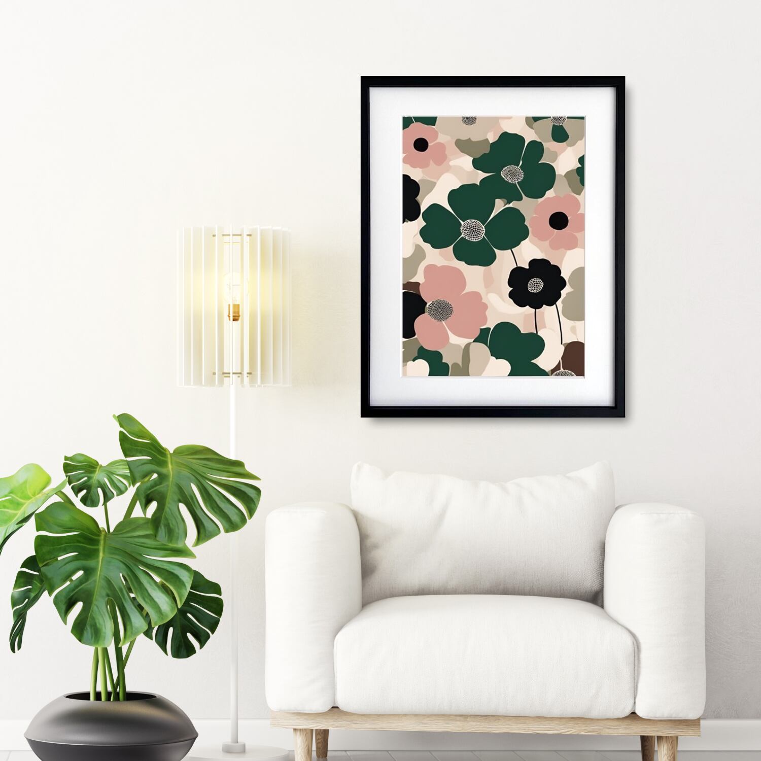 ボタニカル・ハーモニー|ナチュラルとモダンが調和するフラワーアートポスター|柔らかな色彩で空間を上品に彩るインテリアA2ポスター