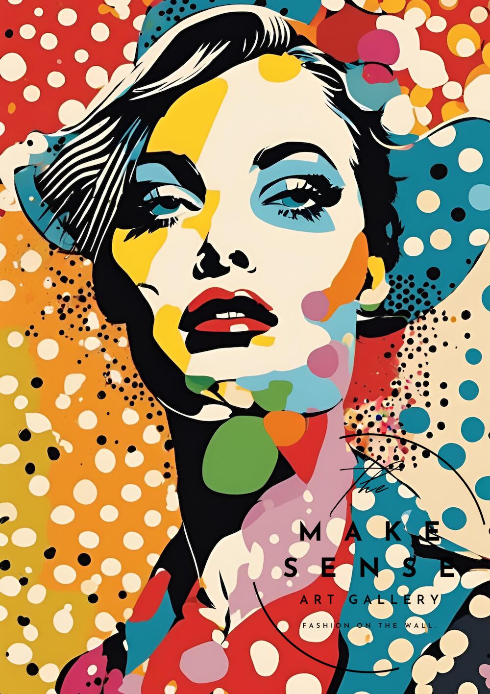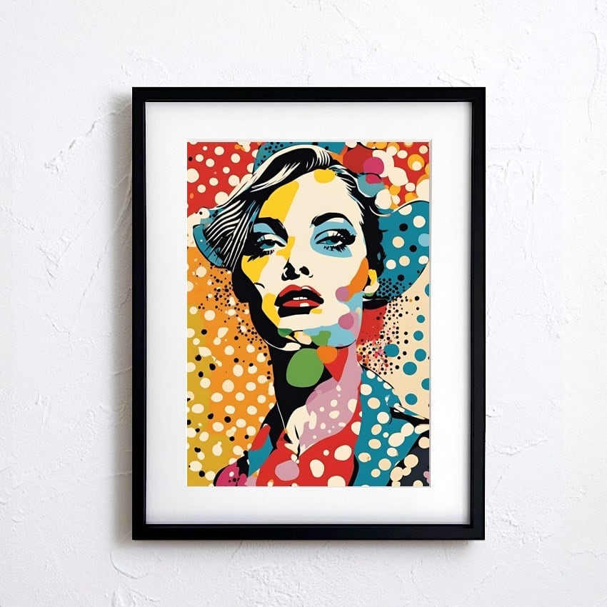 Polka Queen 彩色とドットの女王|ビビッドカラーが躍動する女性ポートレートアートポスター|レトロポップに映えるモダンインテリアA2ポスター