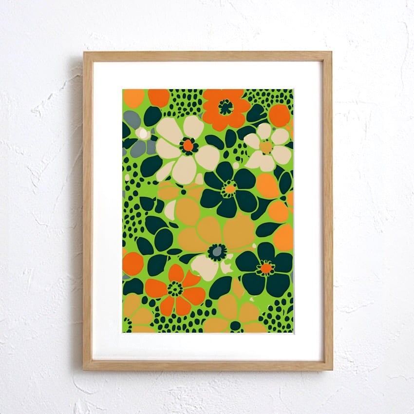 Blooming Pop|ビビッドカラーが弾ける花柄モダンアートポスター|北欧テイストとレトロポップが融合するおしゃれインテリアA4ポスター