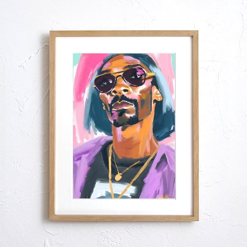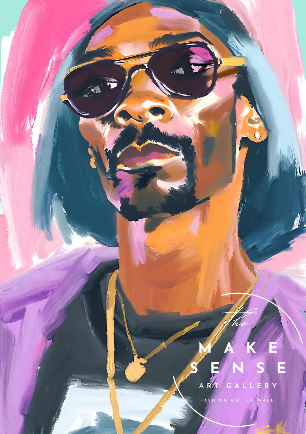 世界的ヒップホップアイコン Snoop Dogg を、ポップで鮮やかな色彩で描き出したポートレートアート。
