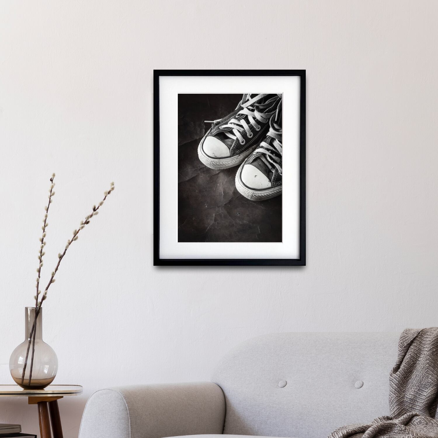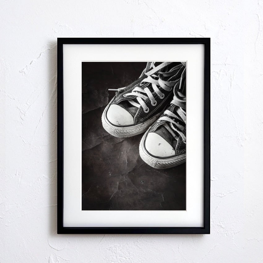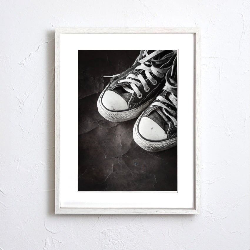 CONVERSE|モノクロが映えるヴィンテージスニーカーポスター|履き込まれた風合いが空間に味わいと深みを添えるアートA3ポスター