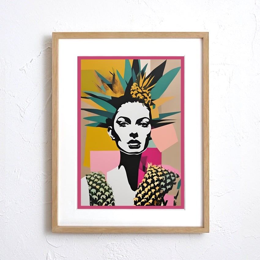 「Pineapple Woman」は、都会的な洗練と南国の解放感を同時に表現した現代アートポスターです。