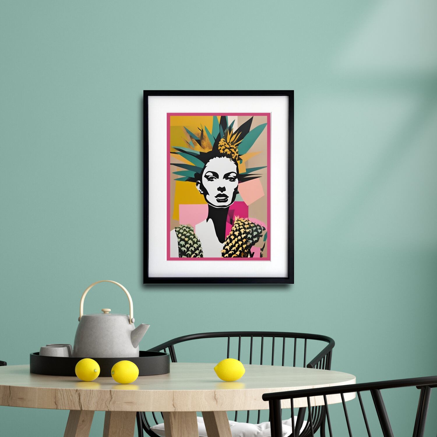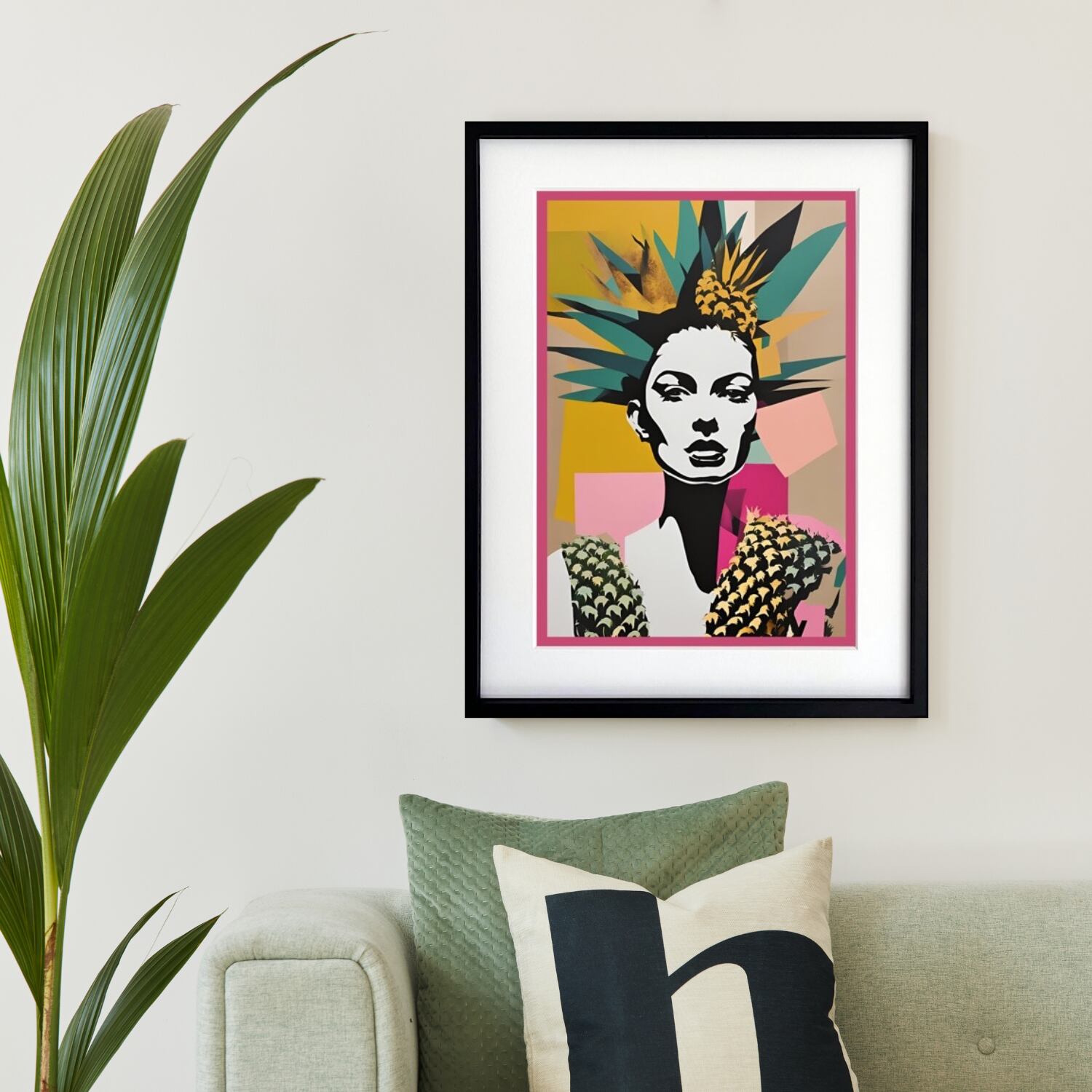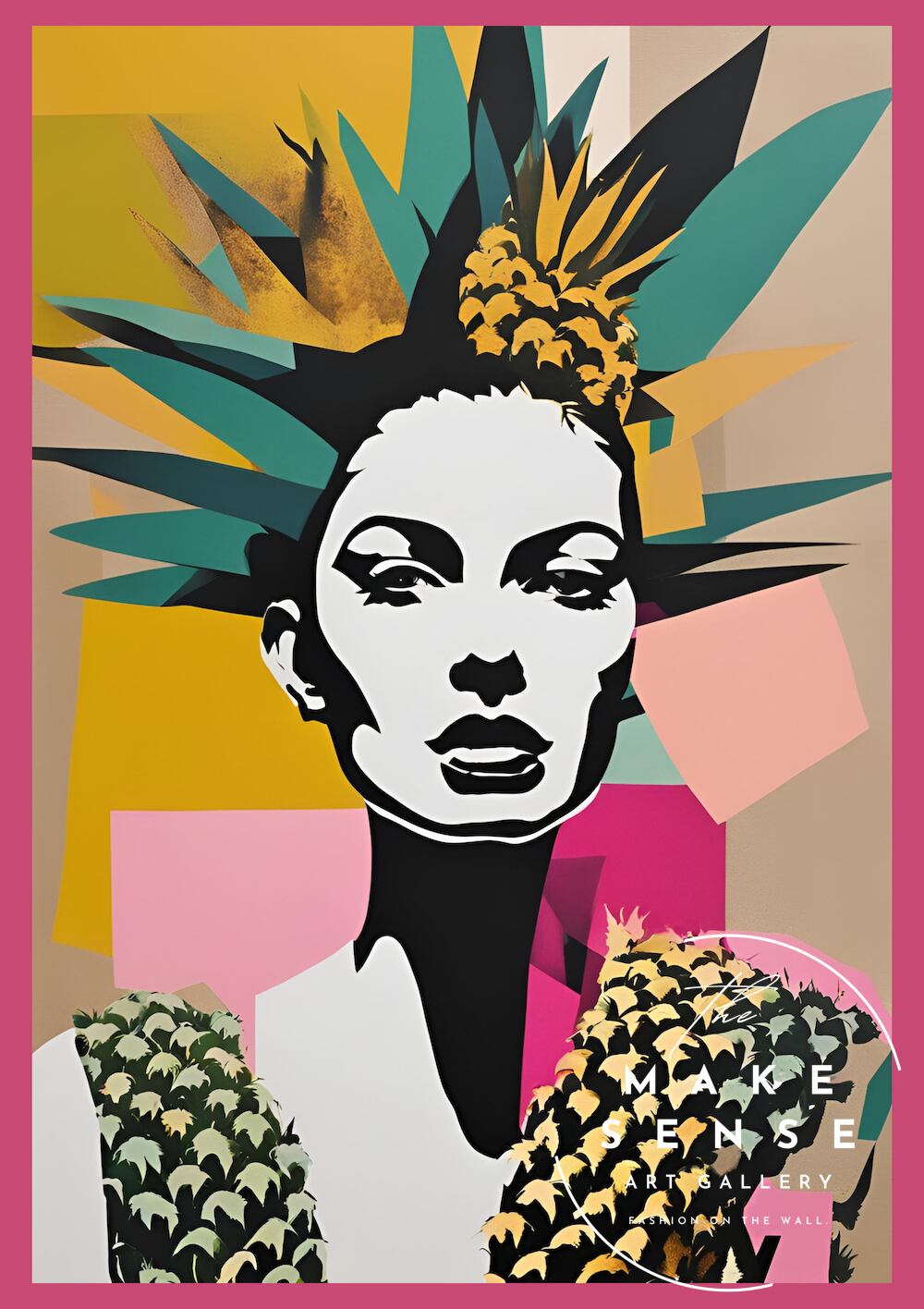 「Pineapple Woman」は、都会的な洗練と南国の解放感を同時に表現した現代アートポスターです。