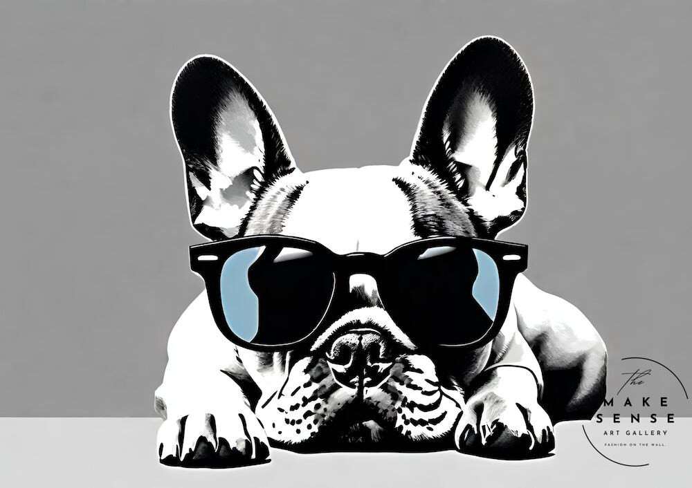 サングラスをかけたフレンチブルドッグが魅せる、ユーモアとスタイリッシュさ。