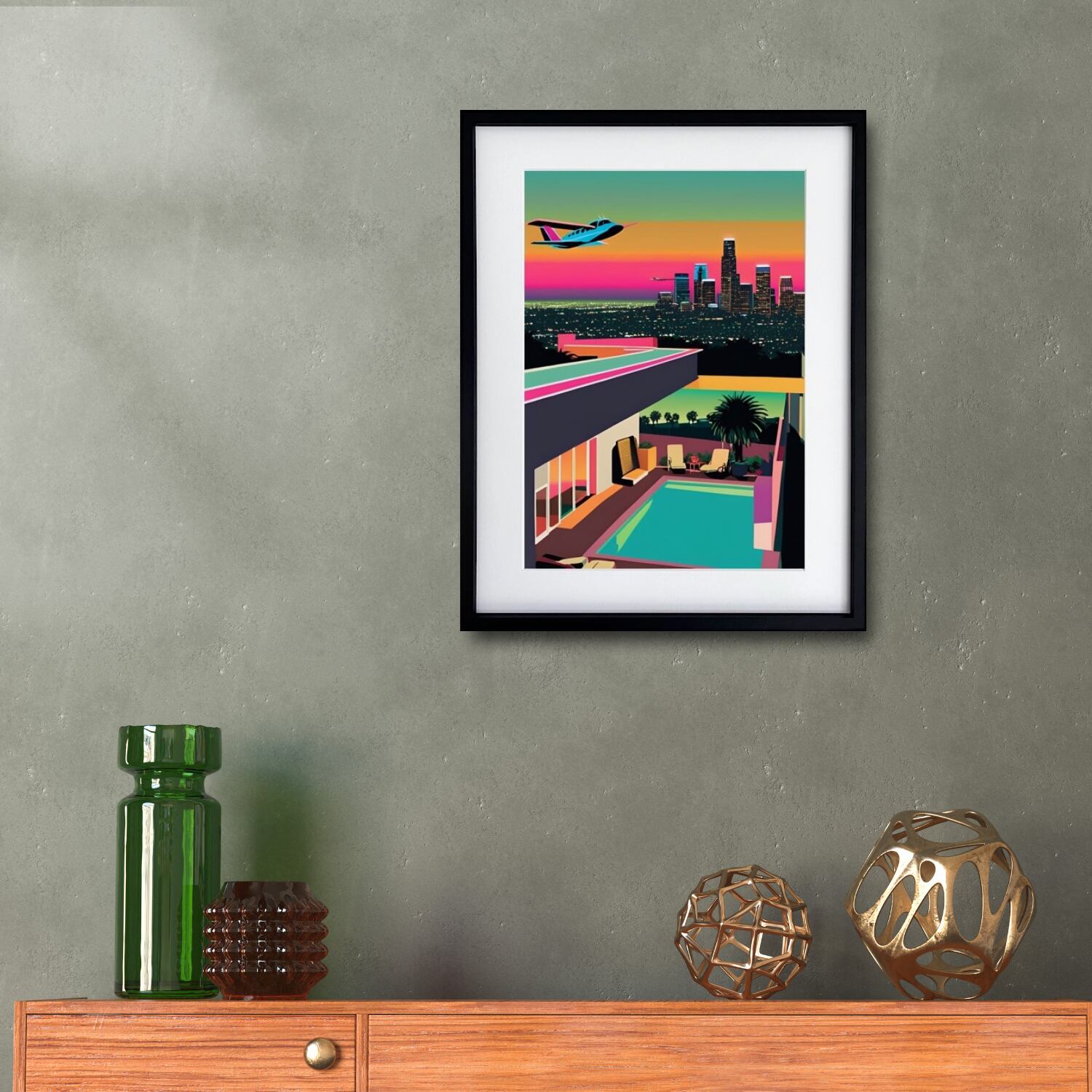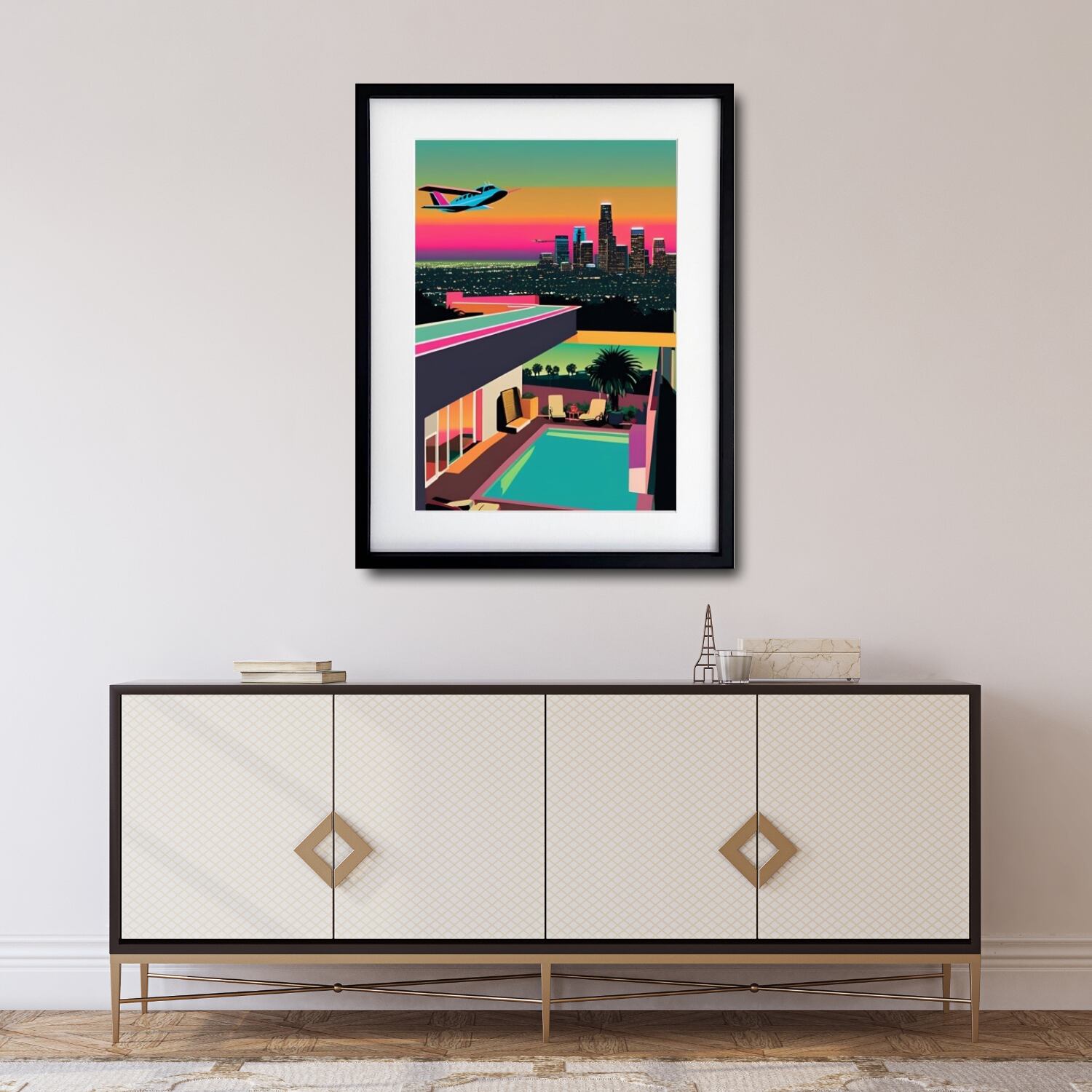 「Hollywood Neon View」は、LAの夜の魔法とリゾートの解放感を一枚に閉じ込めたアート。