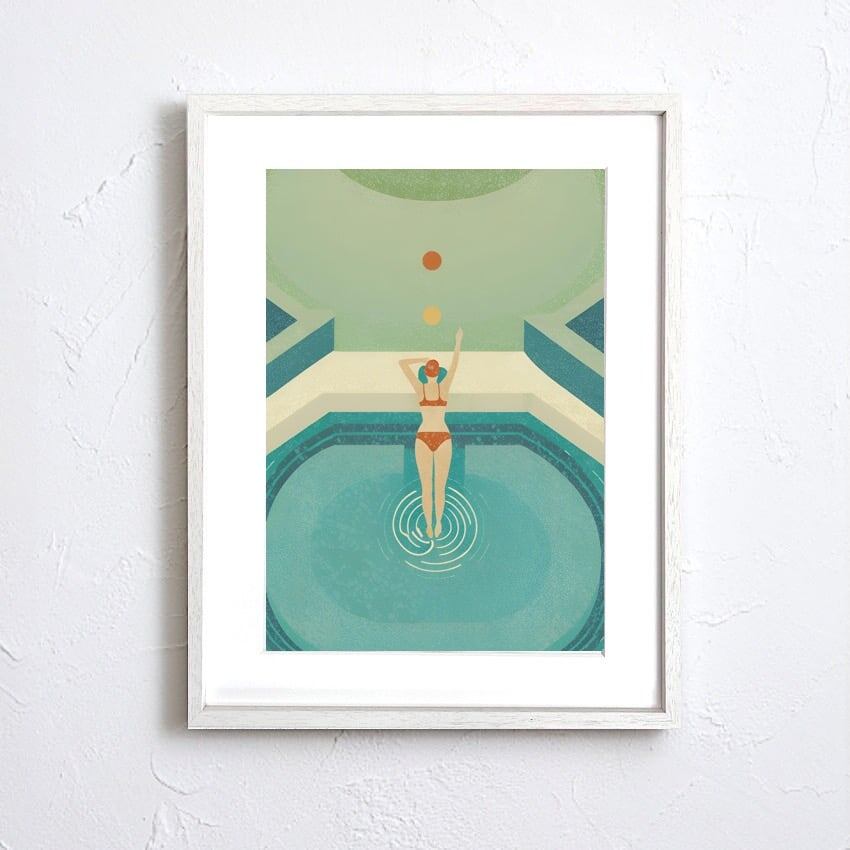 「Summer Dive」は、日常から解放される瞬間を切り取ったアートポスターです。