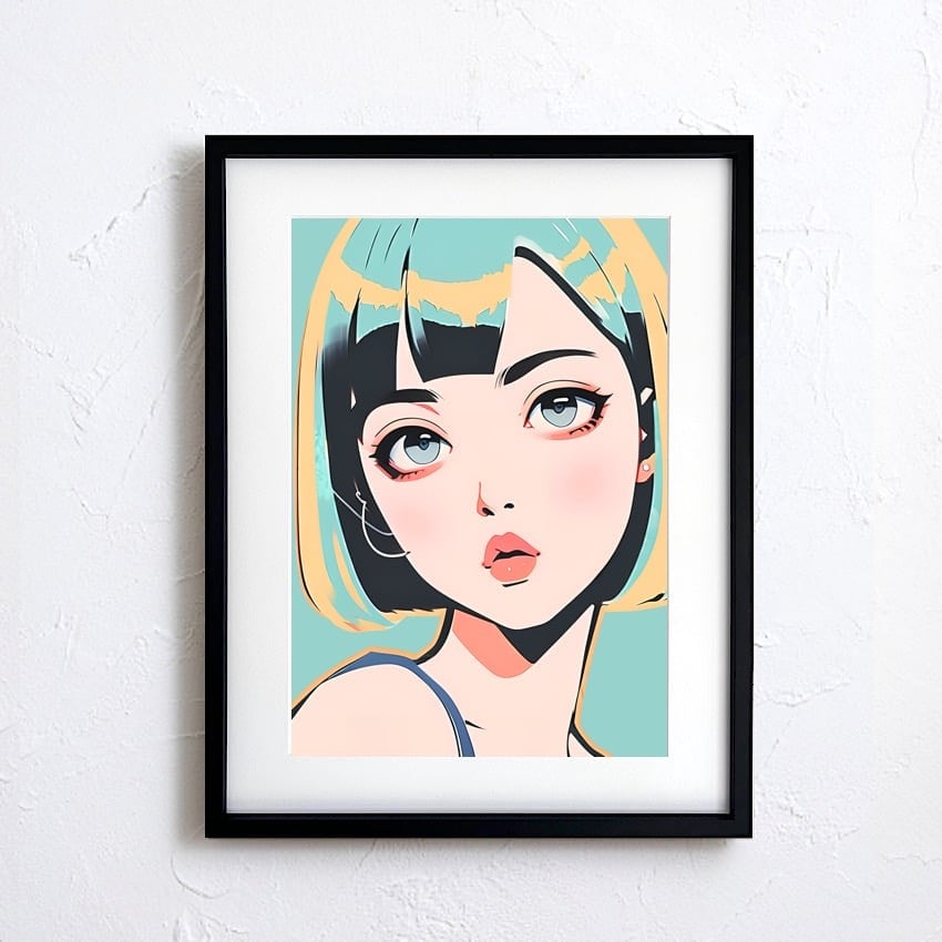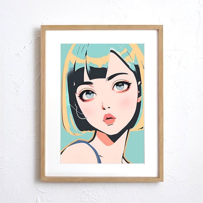 Bob Girl Ⅸ|透明感あるパステルグリーン女性アートポスター|モダンで爽やかな空間に最適|高品質プリント|A4ポスター