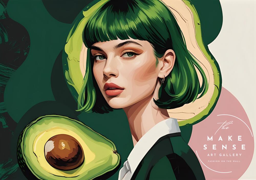 鮮やかなグリーンヘアとアボカドがシンクロする、唯一無二のポップアート。