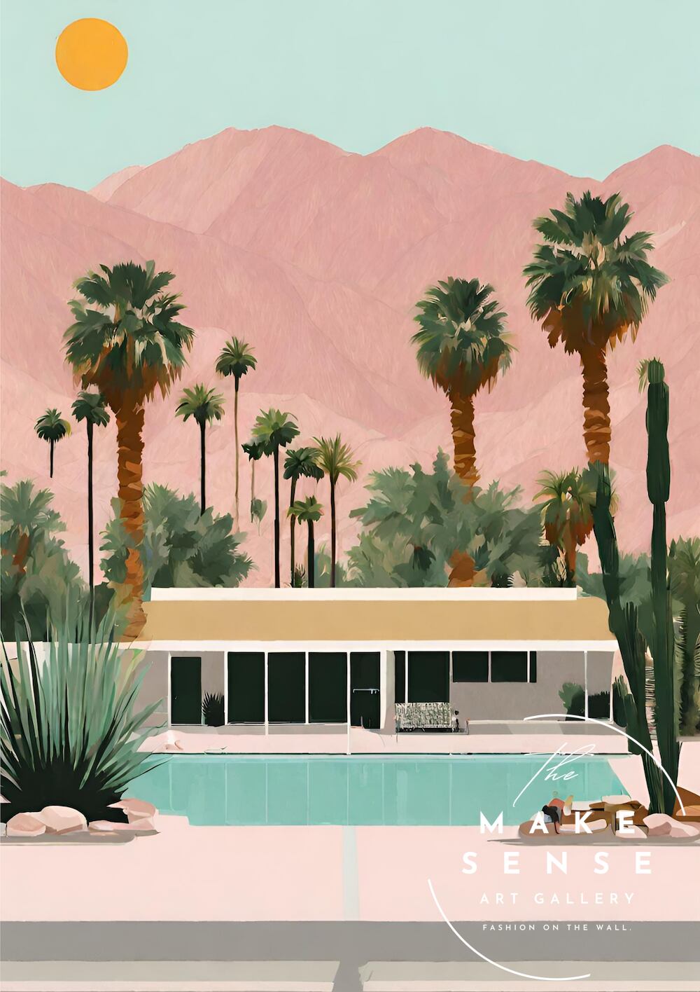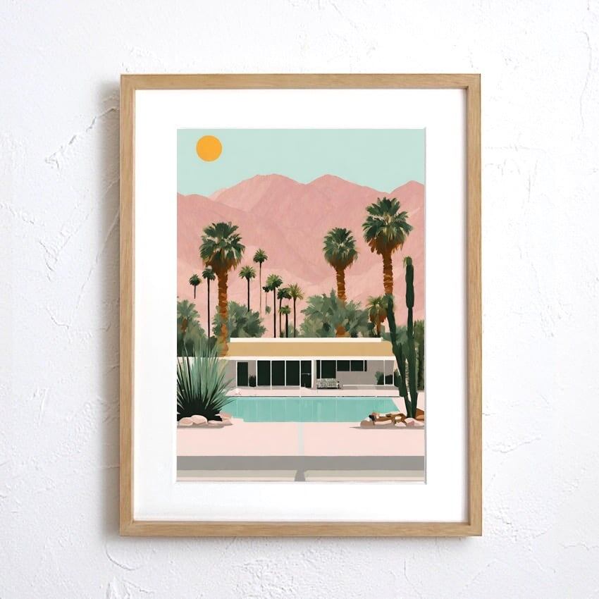 Hollywood Ⅱ|西海岸レトロ×ハリウッド風景アートポスター|夏インテリアに映えるスタイリッシュデザイン|A2ポスター