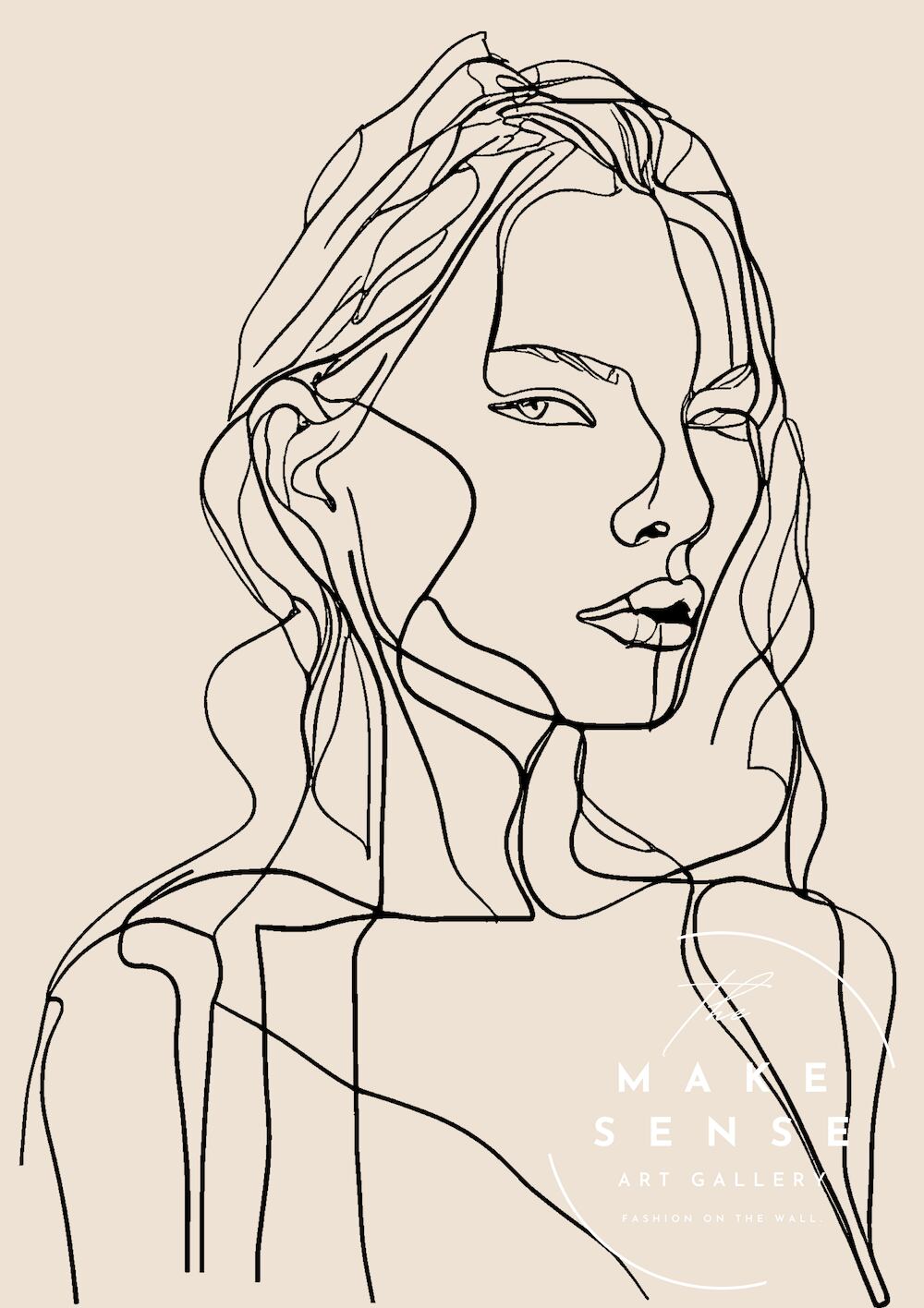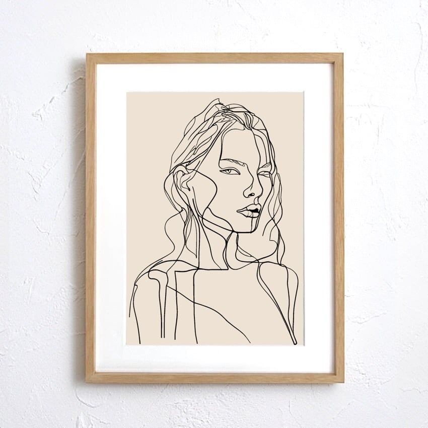 北欧らしいミニマルな線で女性の表情を描いた、上品で洗練されたラインアート。