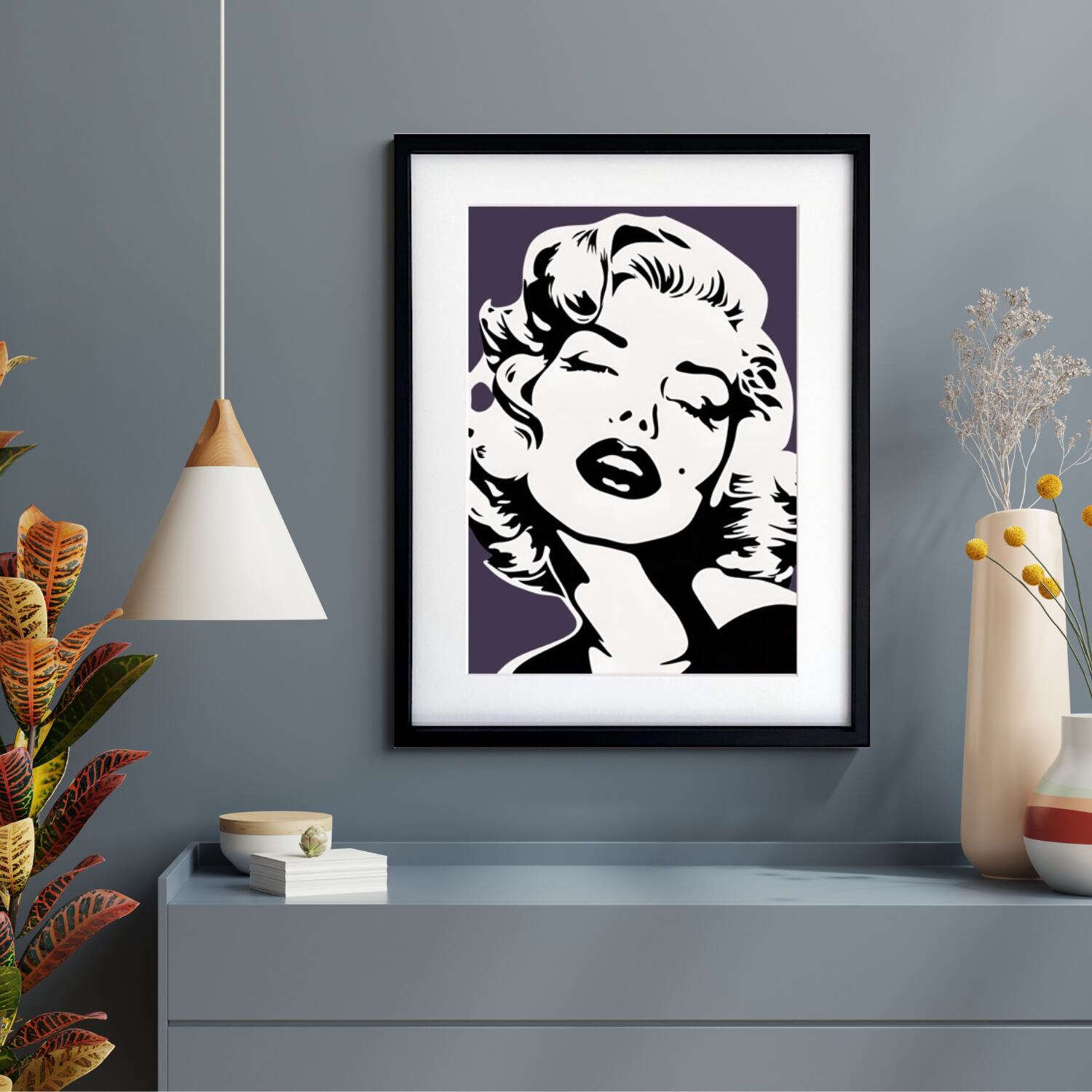 マリリン・モンローを白黒でシックに描いた、洗練されたラグジュアリーアート。