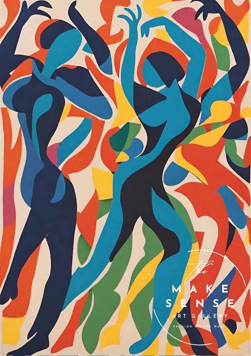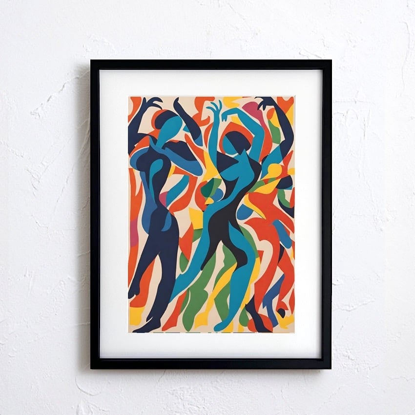 Dance Hall|カラフルな抽象ダンスアートポスター|切り絵風シルエットで空間を華やかに|モダンインテリアに映える一枚|A4ポスター