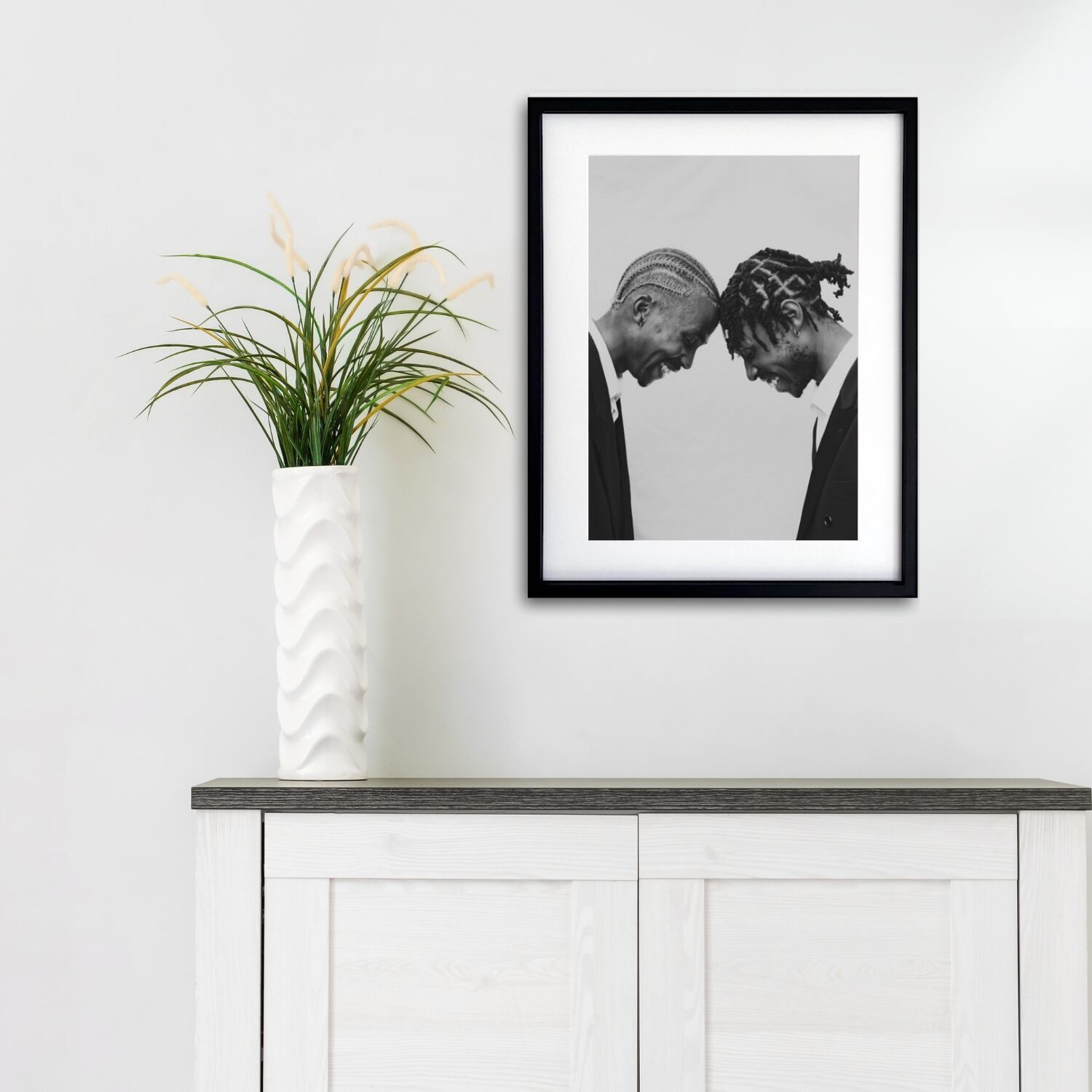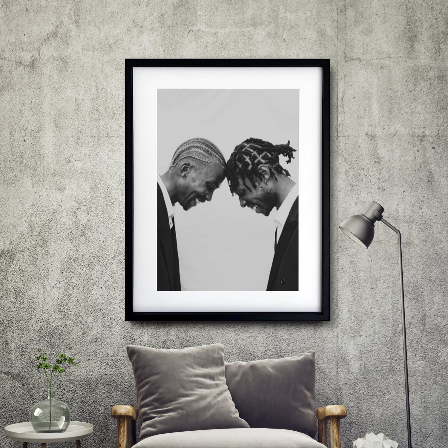 Borother|信頼と絆を象徴するモノトーンアートポスター|スーツの二人が交わす静かな敬意|都会的でモダンな空間に映える一枚|A2ポスター