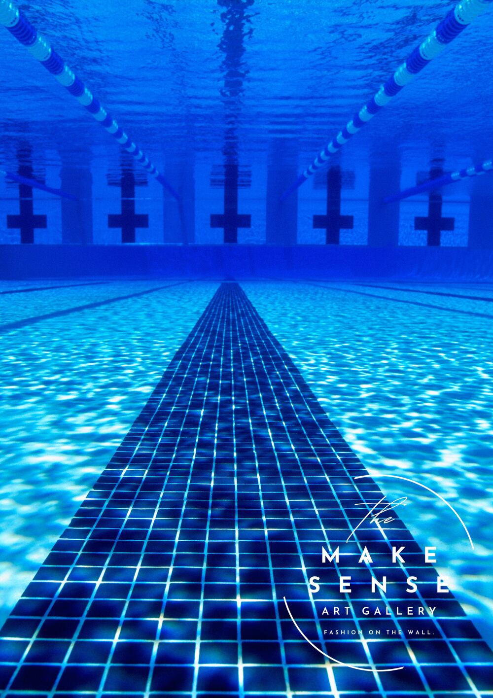 Pool party|青の深さと水面のゆらぎが広がるミニマルアートポスター|視線を導くタイルの構図が空間を洗練|A4ポスター