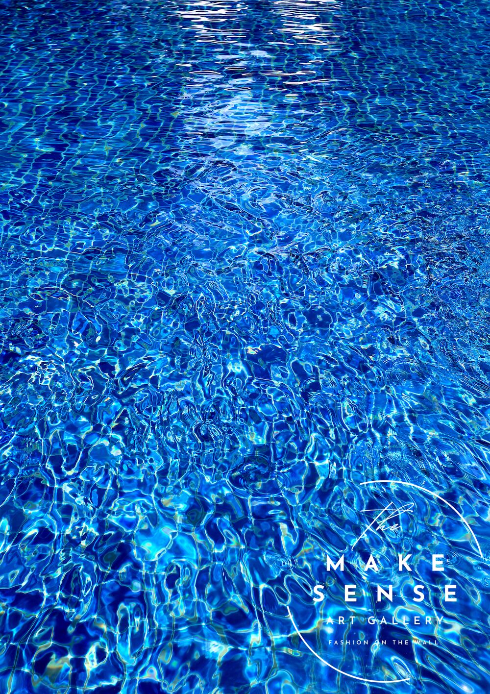 深く透き通るブルーの水面を切り取った、清涼感あふれるアートポスター。