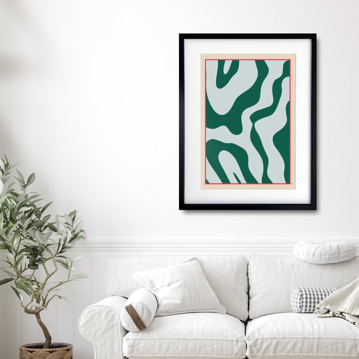 柔らかく揺れる曲線が空間に静かなリズムをつくる抽象アート。