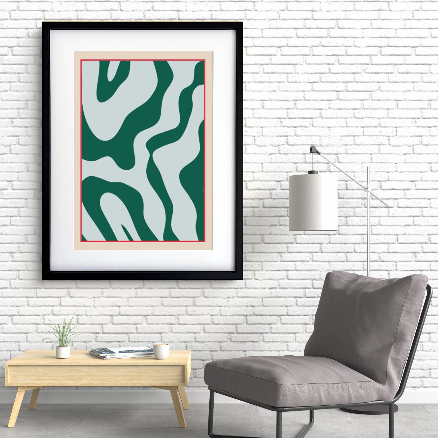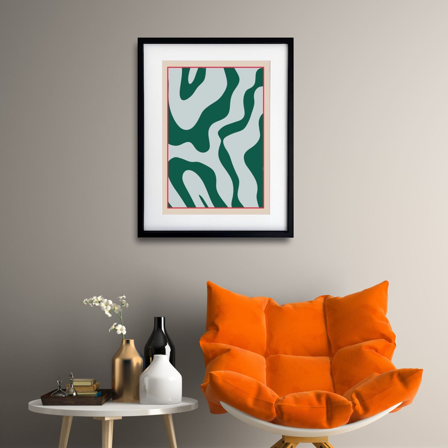 柔らかく揺れる曲線が空間に静かなリズムをつくる抽象アート。