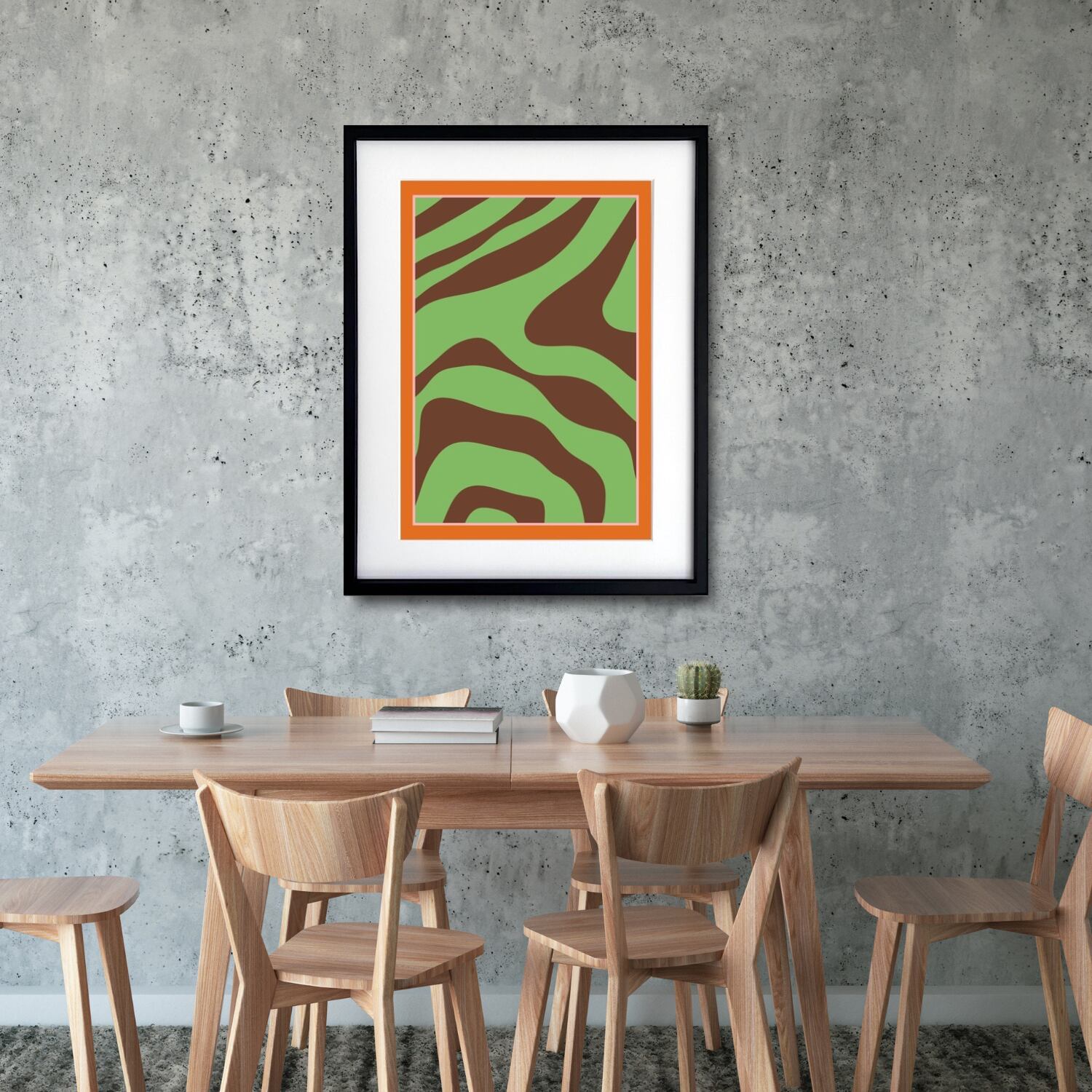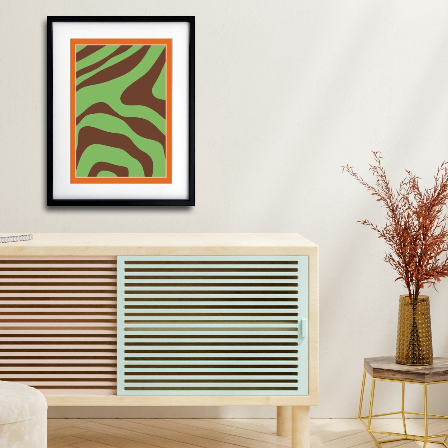 水のゆらぎのようなリズムが、空間をやさしく整えてくれる抽象アートです。