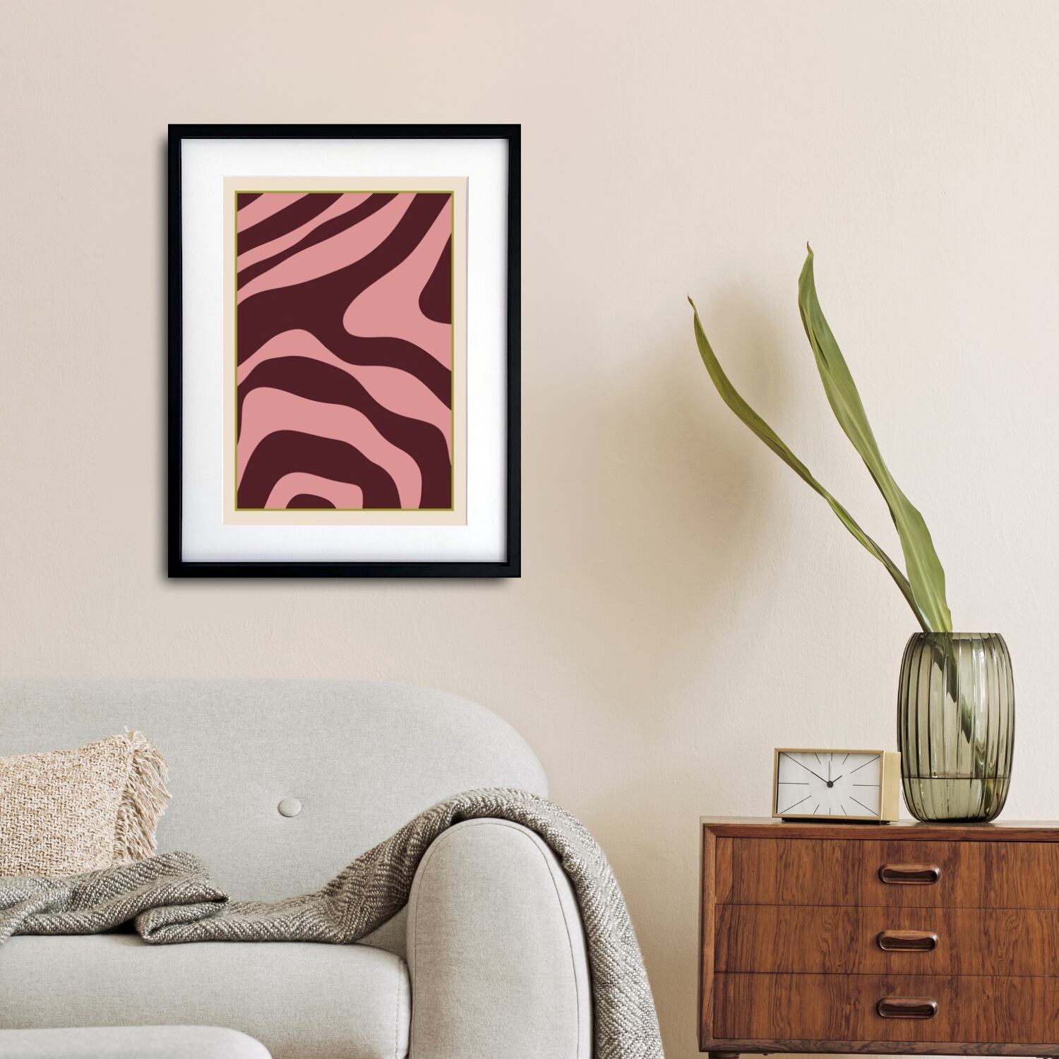 静寂の流れ Ⅴ|深く重なる曲線が生む静謐なミニマル抽象アートポスター|空間を整える洗練デザイン|A2ポスター
